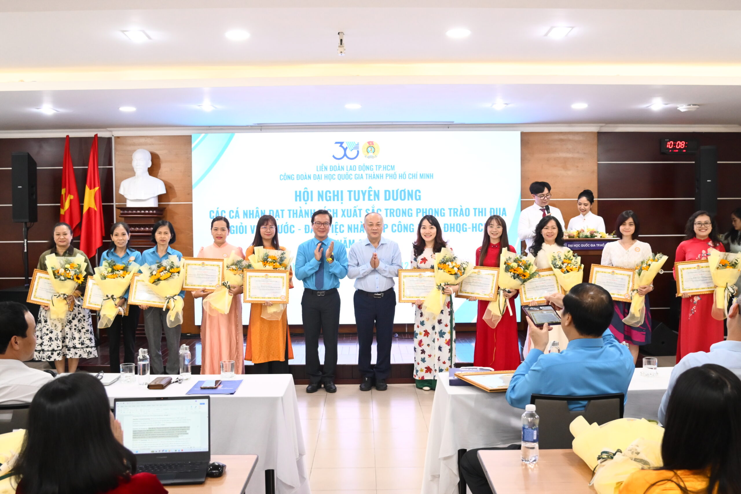 Sáng ngày 23/12/2025, Công đoàn Đại học Quốc gia TP. Hồ Chí Minh (ĐHQG-HCM) tổ chức Hội nghị tuyên dương các gương nữ điển hình tiêu biểu đạt thành tích xuất sắc trong phong trào thi đua “Giỏi việc nước – Đảm việc nhà” năm 2025. Đây là hoạt động thường niên nhằm ghi nhận và tôn vinh những đóng góp nổi bật của đội ngũ nữ viên chức, người lao động trong thực hiện nhiệm vụ chuyên môn, đồng thời khẳng định vai trò quan trọng trong xây dựng gia đình hạnh phúc, bền vững.