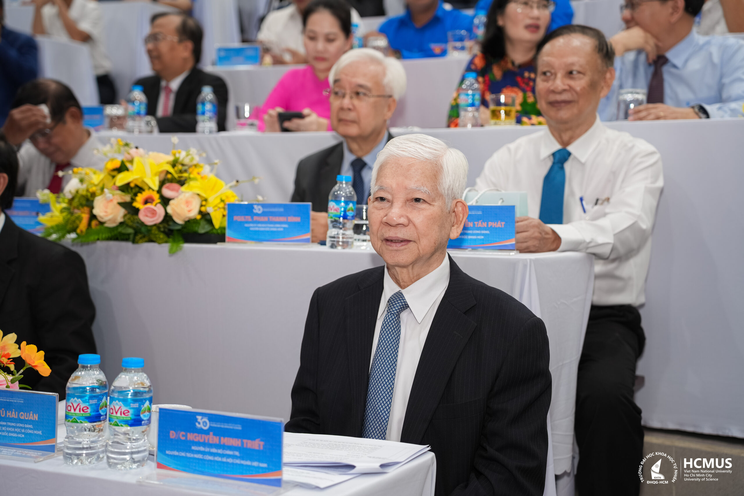Đồng chí Nguyễn Minh Triết – Nguyên Chủ tịch nước Cộng hoà Xã hội chủ nghĩa Việt Nam, cựu sinh viên Ban Toán, Trường Đại học Khoa học Sài Gòn khóa 1960 (nay là Trường Đại học Khoa học tự nhiên, ĐHQG-HCM), tham dự Lễ kỷ niệm 85 năm truyền thống và 30 năm thành lập Trường, đại diện cho những thế hệ sinh viên đã và đang góp phần vào sự phát triển của Nhà trường và đất nước.