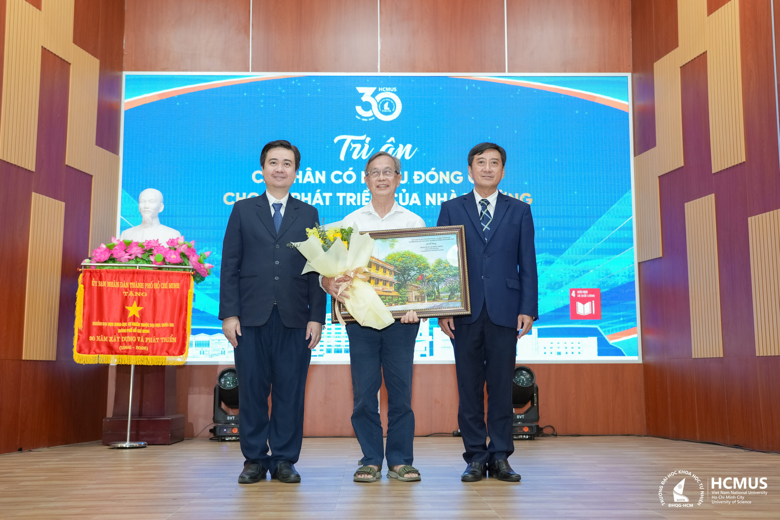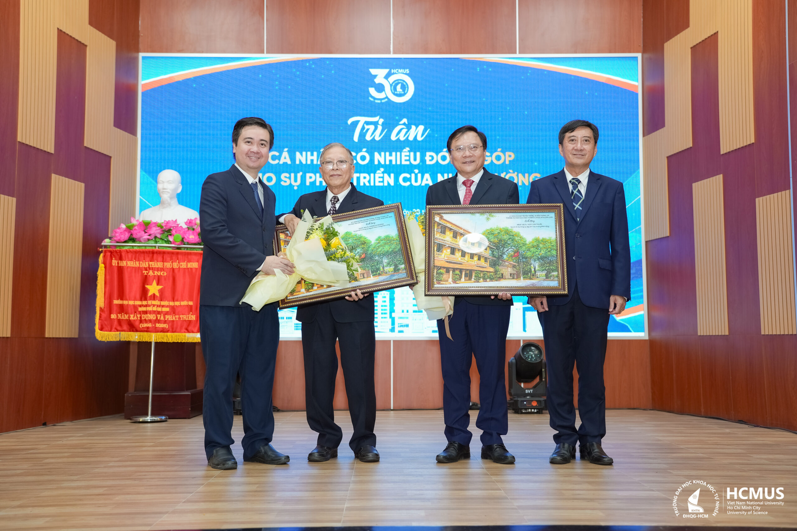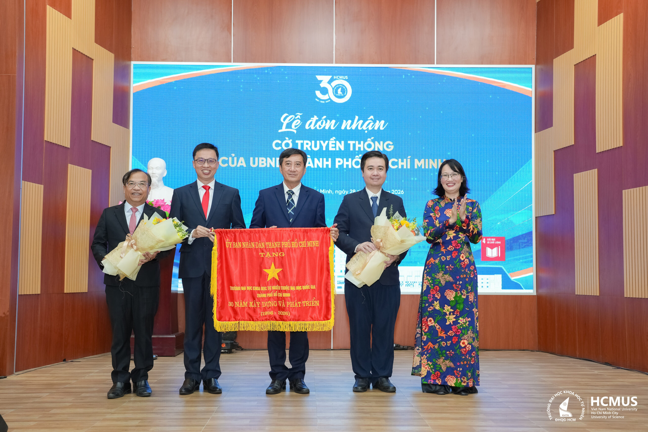 Nhân dịp này, Trường Đại học Khoa học tự nhiên vinh dự đón nhận Cờ truyền thống của UBND TP.HCM và Bằng khen của Đại học Quốc gia TP.HCM, ghi nhận những đóng góp trong sự nghiệp giáo dục, đào tạo và phát triển khoa học – công nghệ.