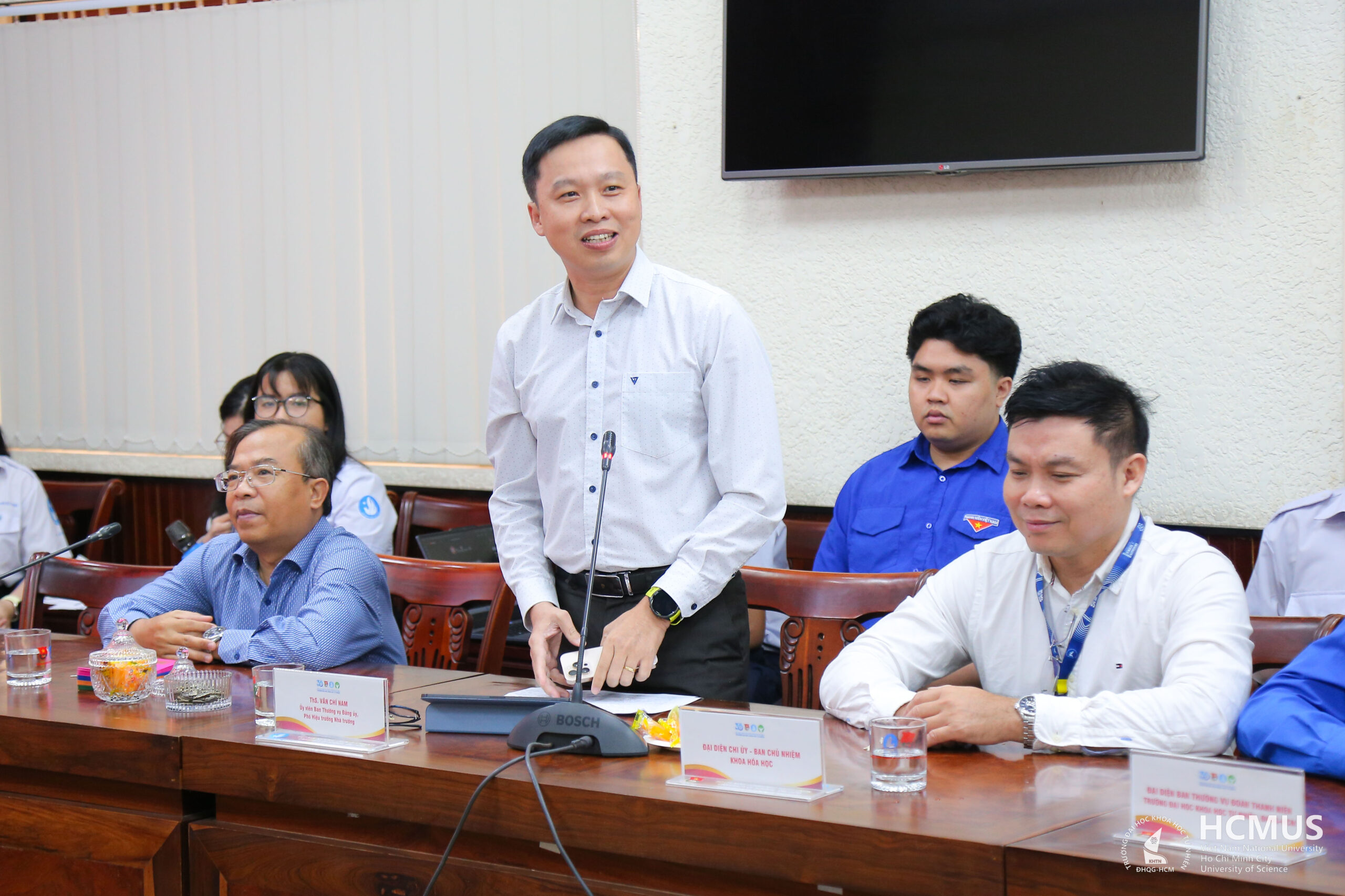 Phát biểu tại buổi gặp gỡ, ThS. Văn Chí Nam – Ủy viên Ban Thường vụ Đảng ủy, Phó Hiệu trưởng Nhà trường, đã chia sẻ về bối cảnh năm 2025 với nhiều biến động, đặc biệt là tình hình thiên tai, bão lũ diễn ra tại nhiều địa phương, trong đó có khu vực miền Trung, gây ảnh hưởng đáng kể đến đời sống của người dân và gia đình sinh viên. Trên cơ sở đó, Phó Hiệu trưởng đã ghi nhận và biểu dương tinh thần tự lập, chủ động của các sinh viên khi lựa chọn ở lại thành phố để làm thêm, trau dồi ngoại ngữ, tích lũy kỹ năng, đồng thời góp phần giảm bớt gánh nặng cho gia đình.