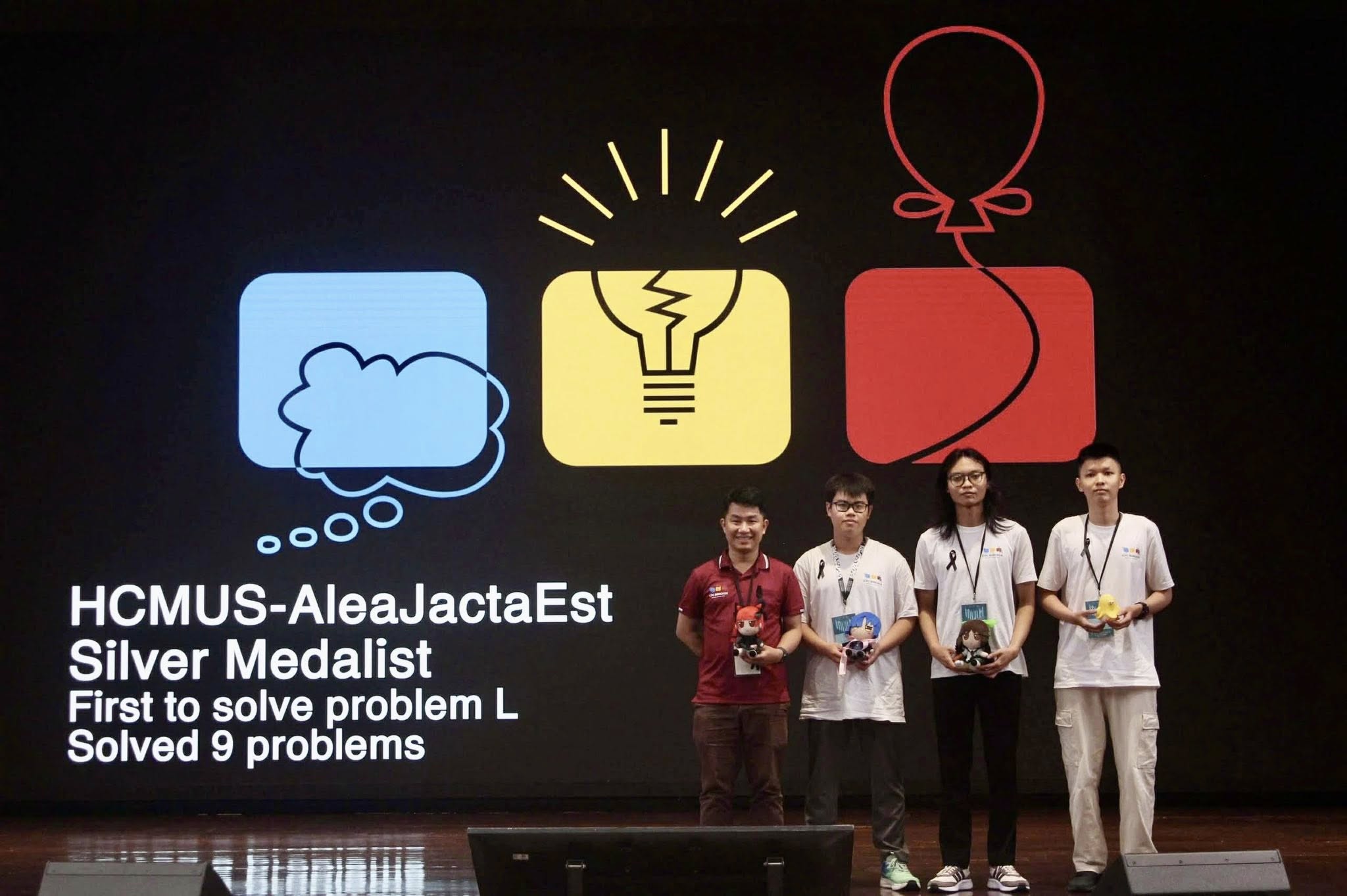 Đội HCMUS-AleaJactaEst gồm ba sinh viên Vũ Quốc Lâm, Trịnh Minh Huy và Lê Nguyễn Hữu An (chương trình Tiên tiến ngành Khoa học Máy tính), đã vượt lên dẫn đầu quốc gia khi giải đúng 10/12 bài với 778 điểm phạt. Thành tích ấn tượng này được ghi nhận chỉ ít ngày sau khi nhóm giành Huy chương Bạc tại ICPC Asia Bangkok Regional 2025 ở Thái Lan.
