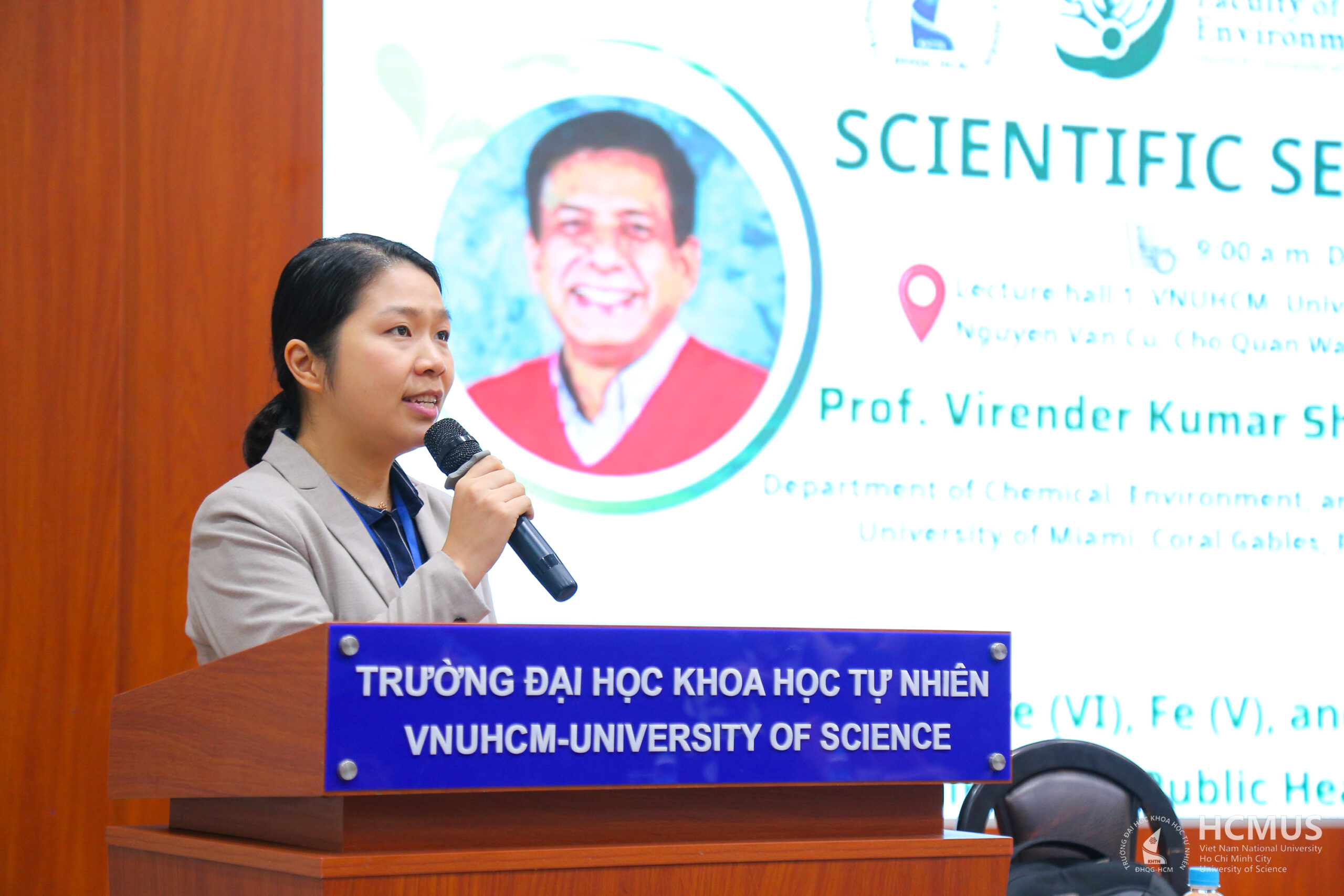 Sáng ngày 15/12, Khoa Môi trường, Trường Đại học Khoa học tự nhiên, ĐHQG-HCM đã tổ chức thành công seminar khoa học, chủ đề “Các trạng thái Sắt hóa trị cao (Fe(VI), Fe(V), Fe(IV)) trong phát triển bền vững nguồn nước và y tế cộng đồng” (High-Valent Iron Species (Fe(VI), Fe(V), and Fe(IV)) in Water Sustainability and Public Health).