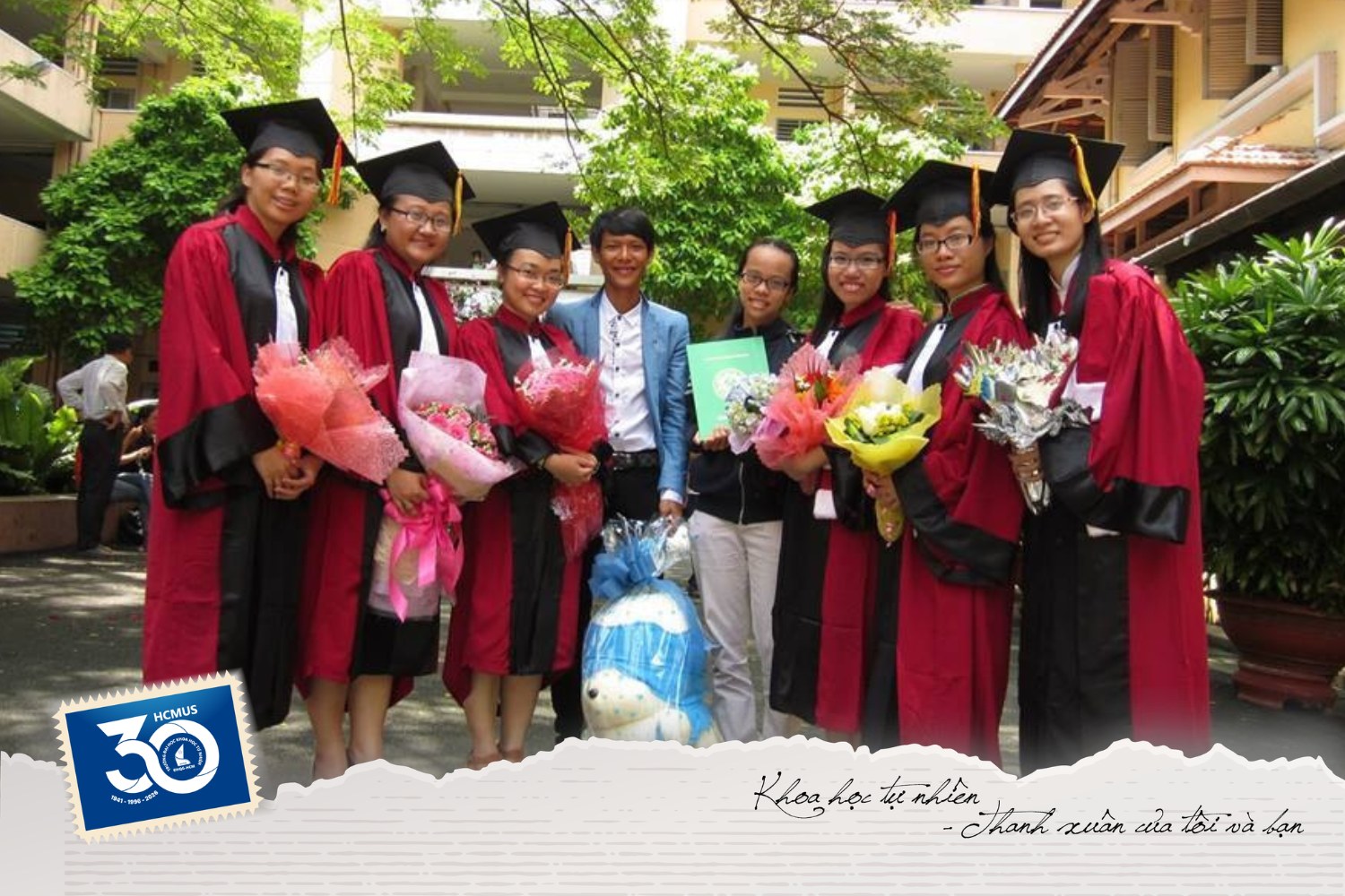 “Bức ảnh là kỷ niệm ngày Khóa 09 tụi mình tốt nghiệp — một dấu mốc nhắc nhớ về quãng thời gian học tập và trưởng thành tại Trường Đại học Khoa học tự nhiên, ĐHQG-HCM. Những năm tháng ấy đã giúp tụi mình có nền tảng kiến thức chuyên môn vững vàng, rèn luyện bản lĩnh và tư duy tốt để bước vào công việc cũng như cuộc sống.