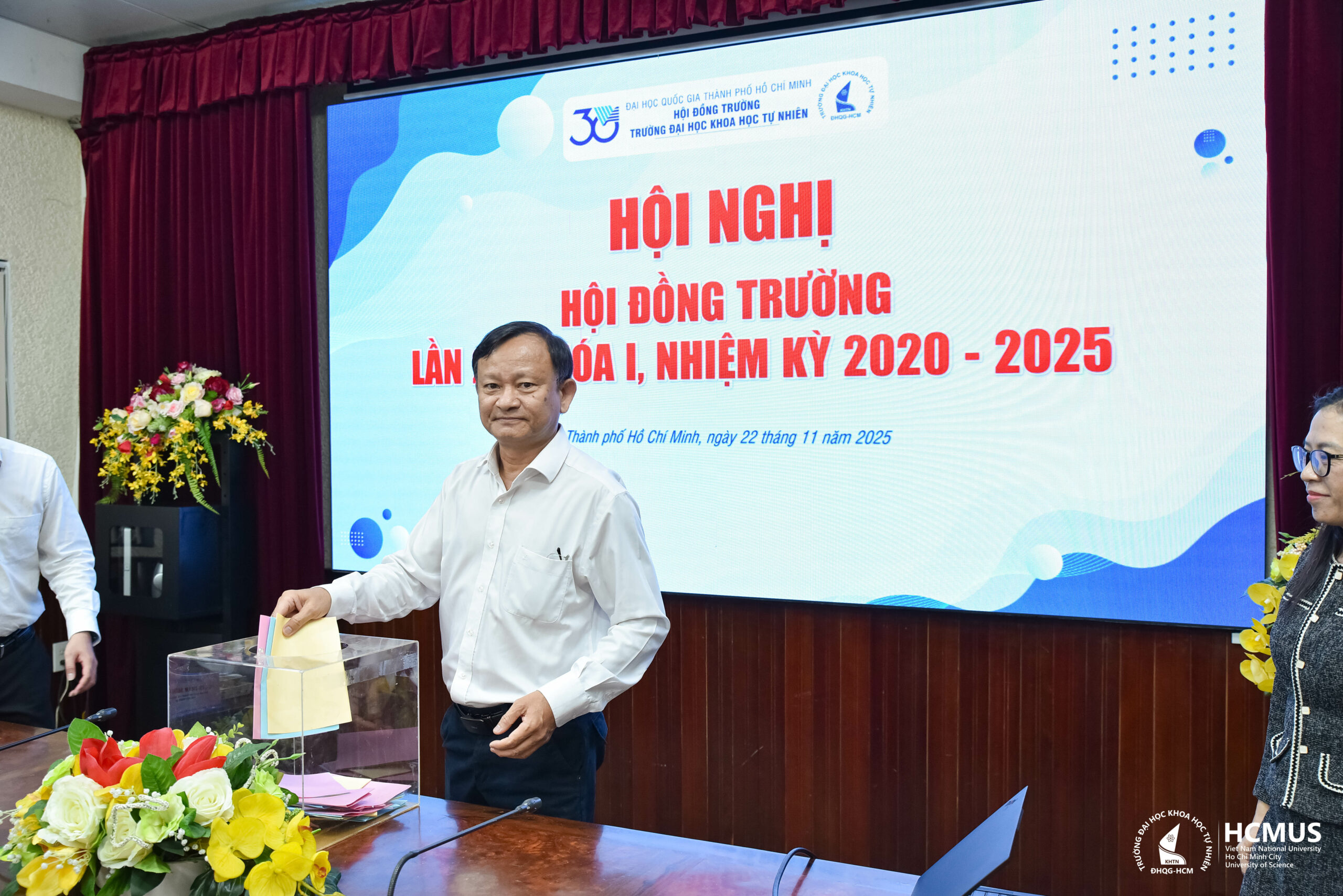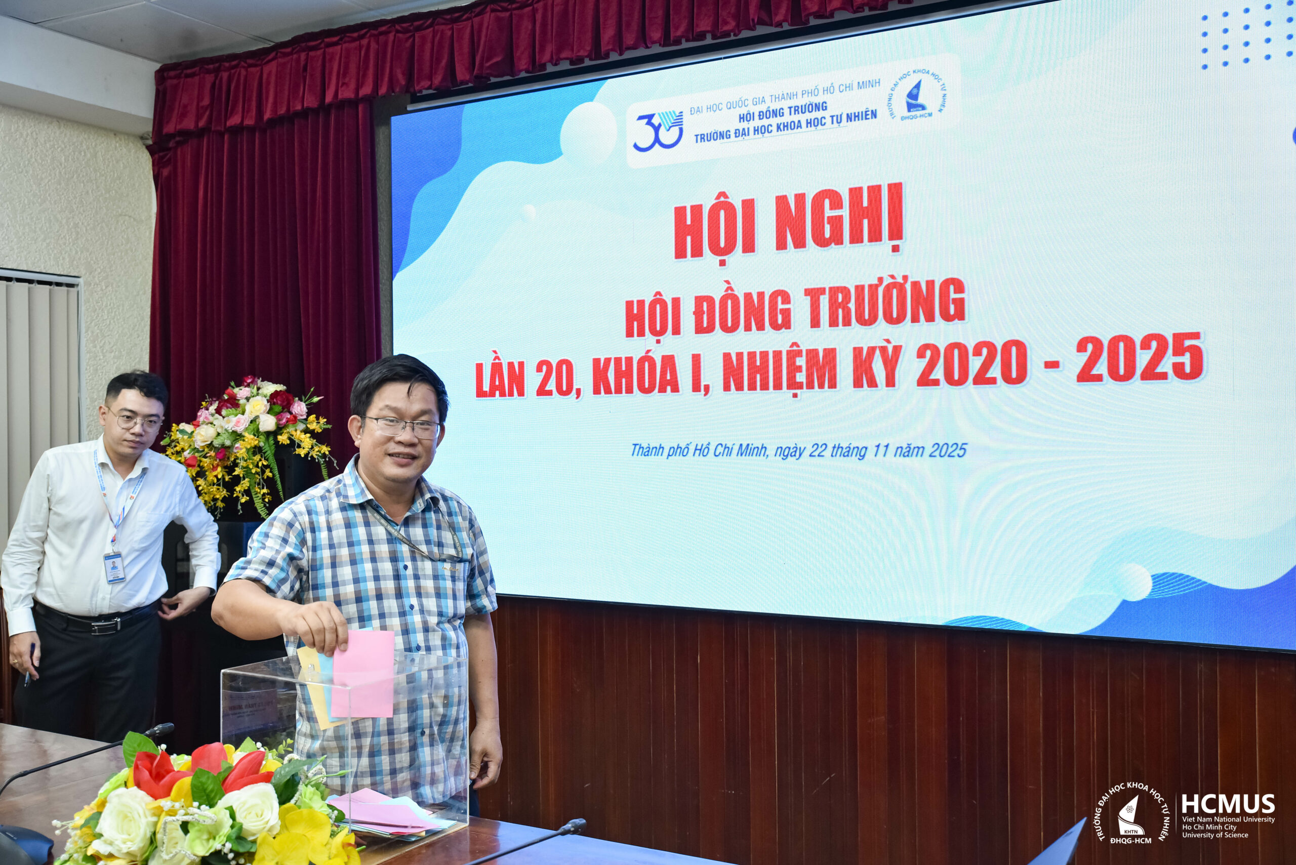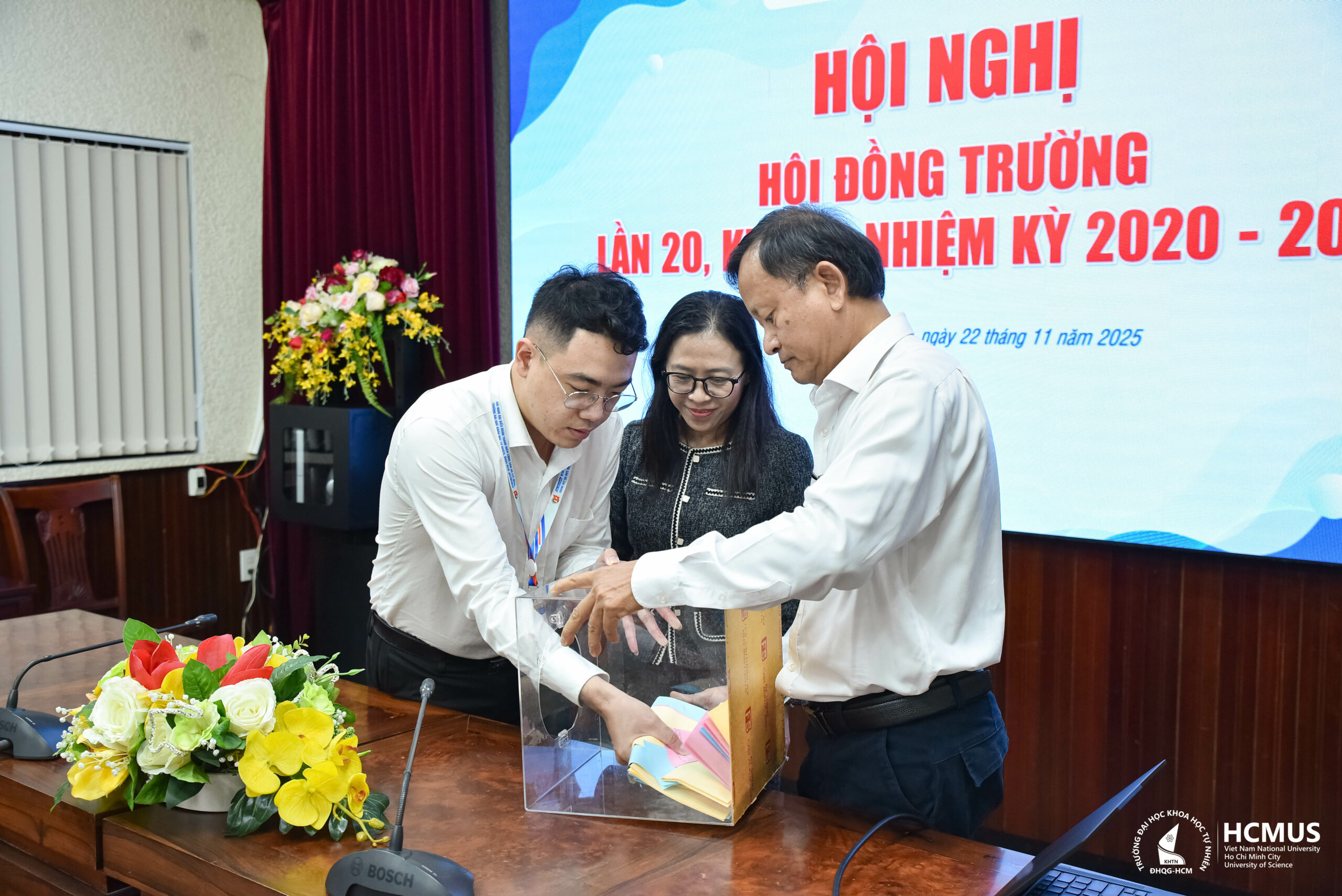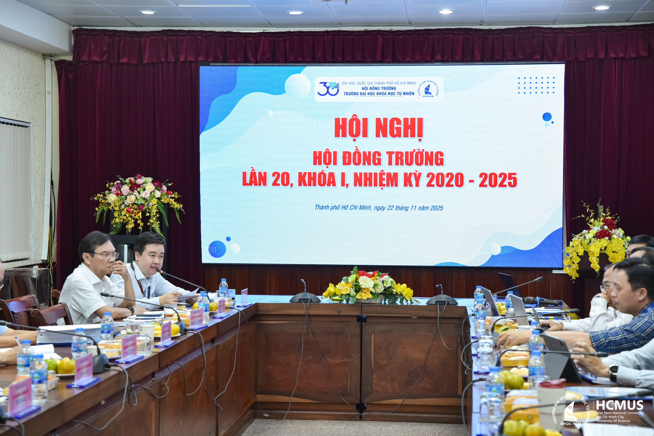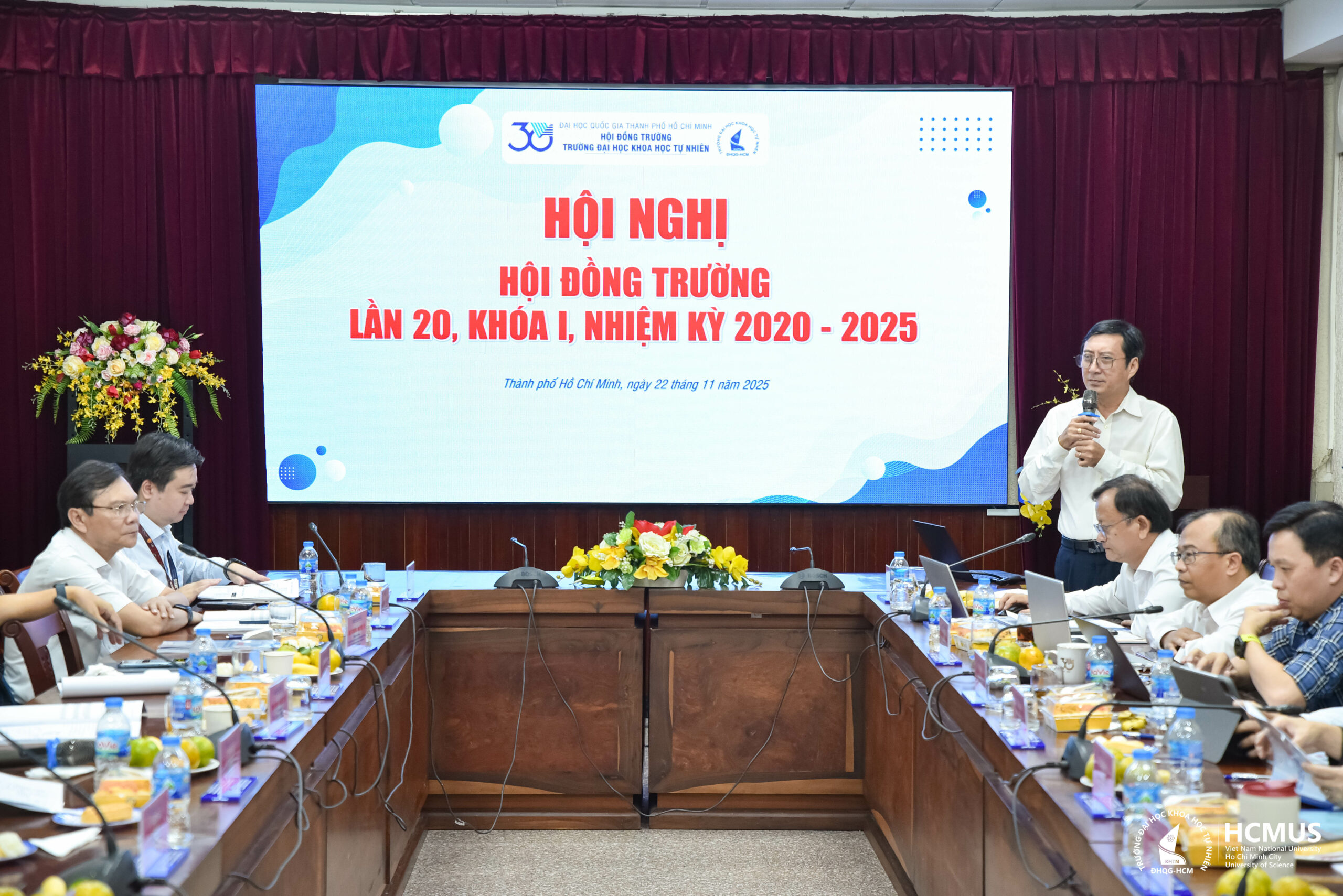 Ngày 22/11, Hội đồng trường Trường Đại học Khoa học tự nhiên, ĐHQG-HCM đã tổ chức Hội nghị lần thứ 20, Khóa I, Nhiệm kỳ 2020-2025 tại cơ sở 227 Nguyễn Văn Cừ. Hội nghị tập trung báo cáo kết quả hoạt động năm 2025, thông qua các văn kiện chiến lược phát triển dài hạn và dự kiến nhiệm vụ trọng tâm năm 2026, nhằm xác lập phương hướng hoạt động và triển khai các nhiệm vụ của Nhà trường.