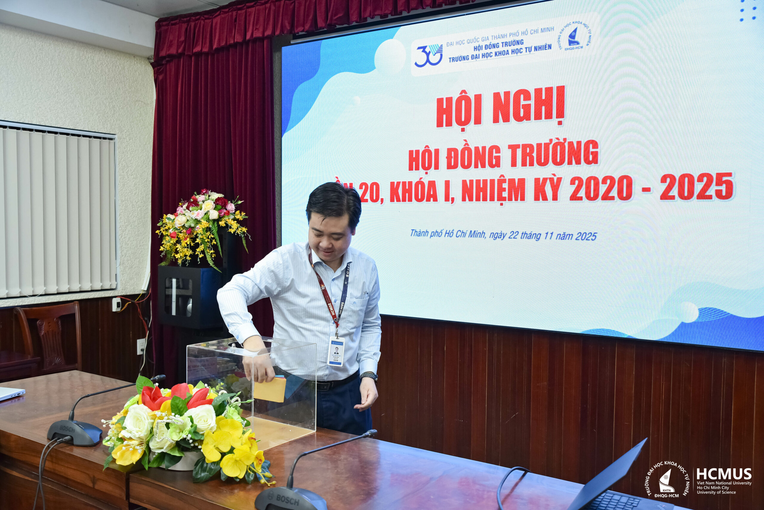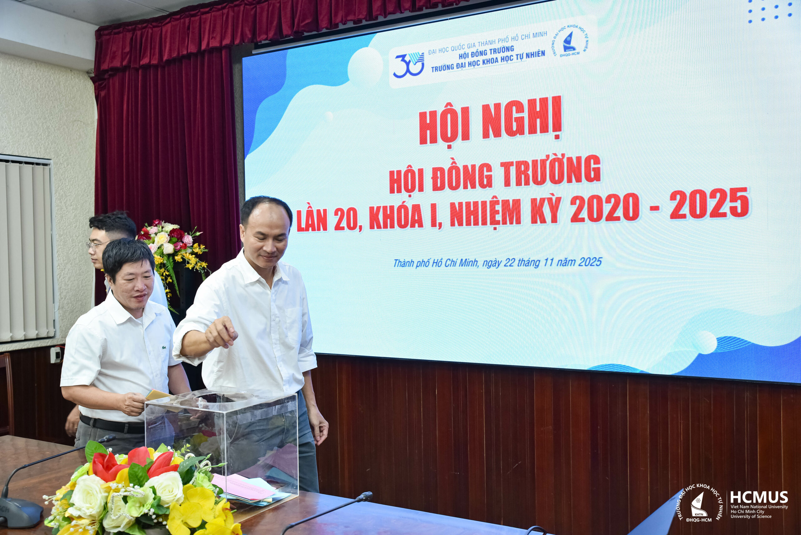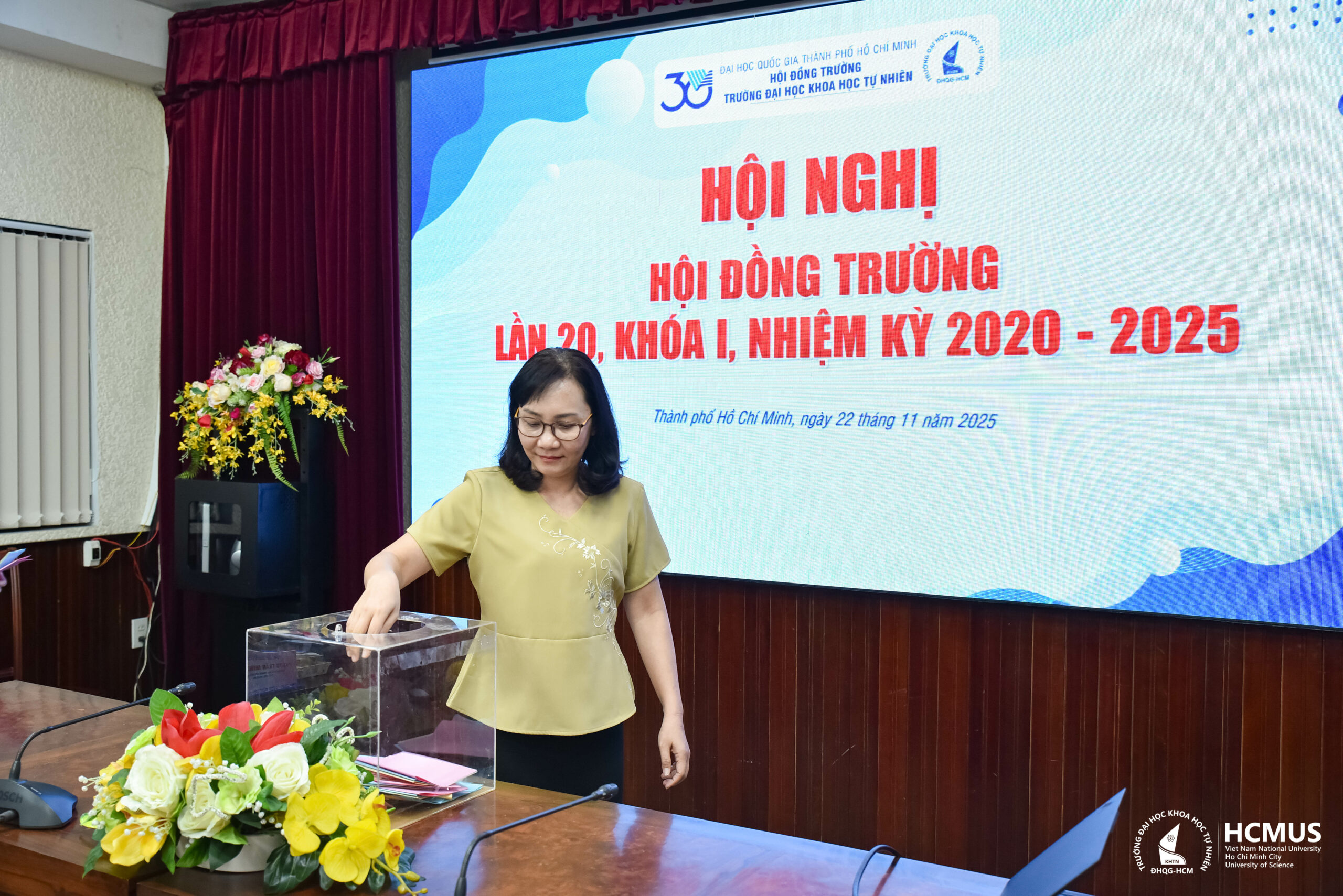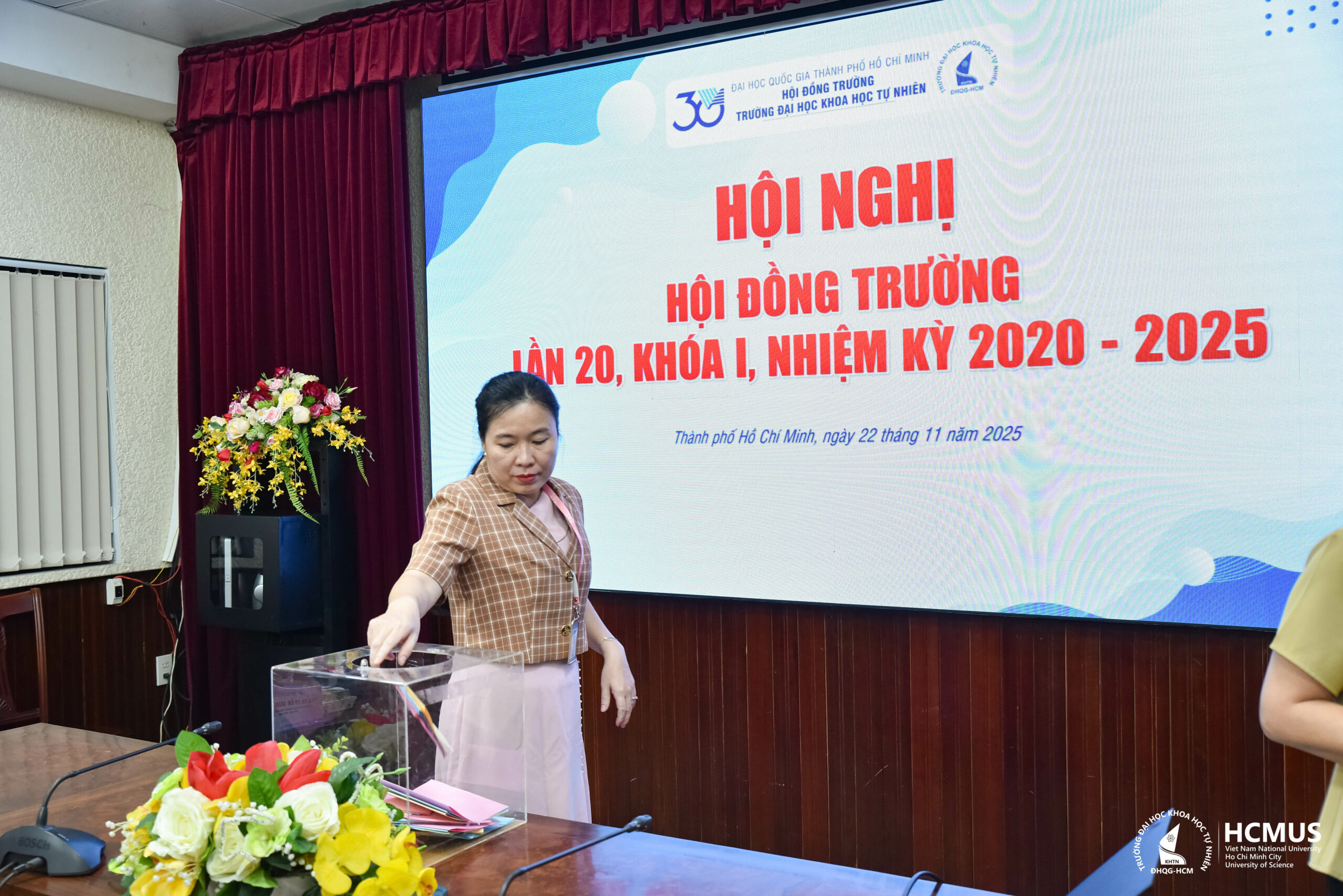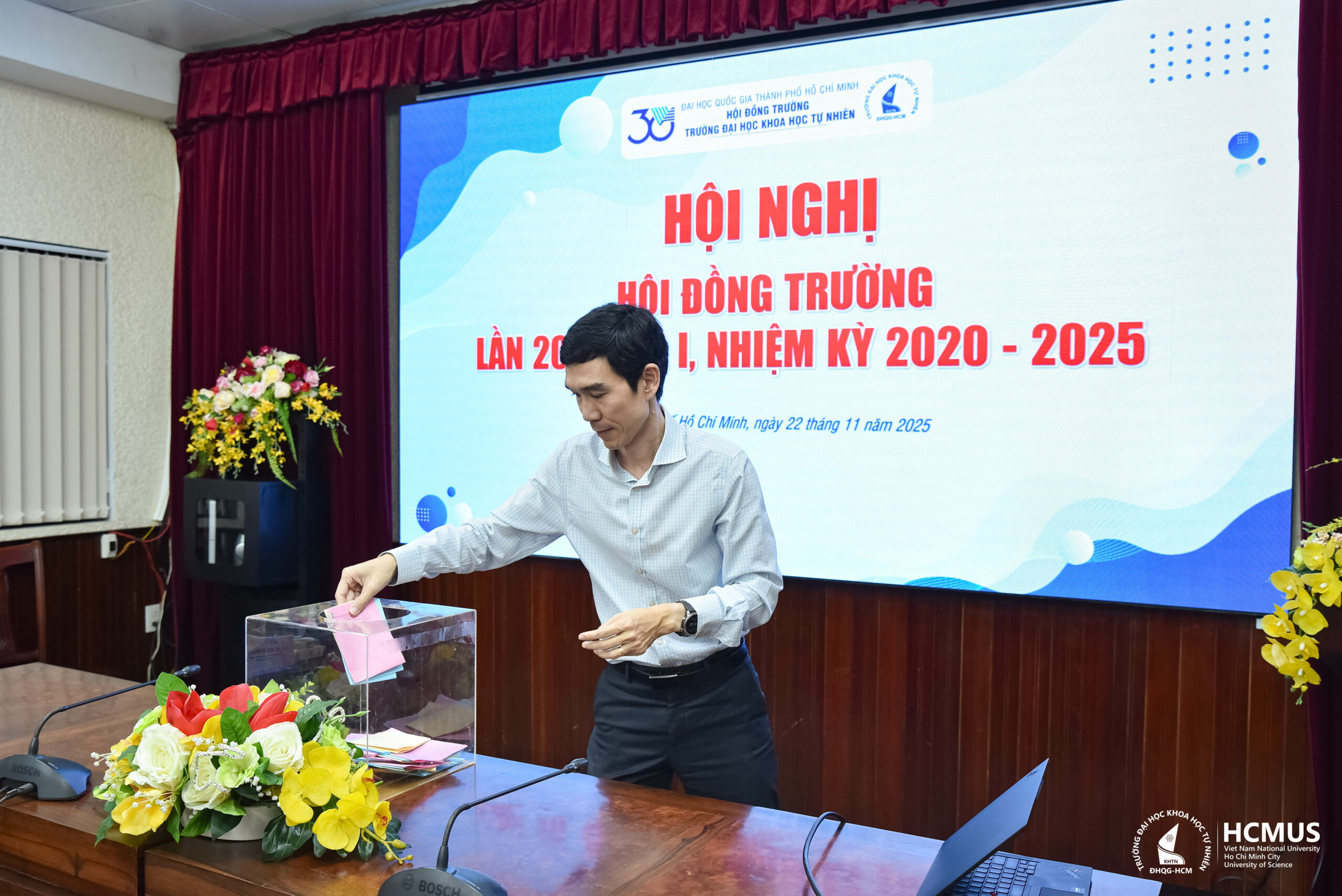 Ngày 22/11, Hội đồng trường Trường Đại học Khoa học tự nhiên, ĐHQG-HCM đã tổ chức Hội nghị lần thứ 20, Khóa I, Nhiệm kỳ 2020-2025 tại cơ sở 227 Nguyễn Văn Cừ. Hội nghị tập trung báo cáo kết quả hoạt động năm 2025, thông qua các văn kiện chiến lược phát triển dài hạn và dự kiến nhiệm vụ trọng tâm năm 2026, nhằm xác lập phương hướng hoạt động và triển khai các nhiệm vụ của Nhà trường.
