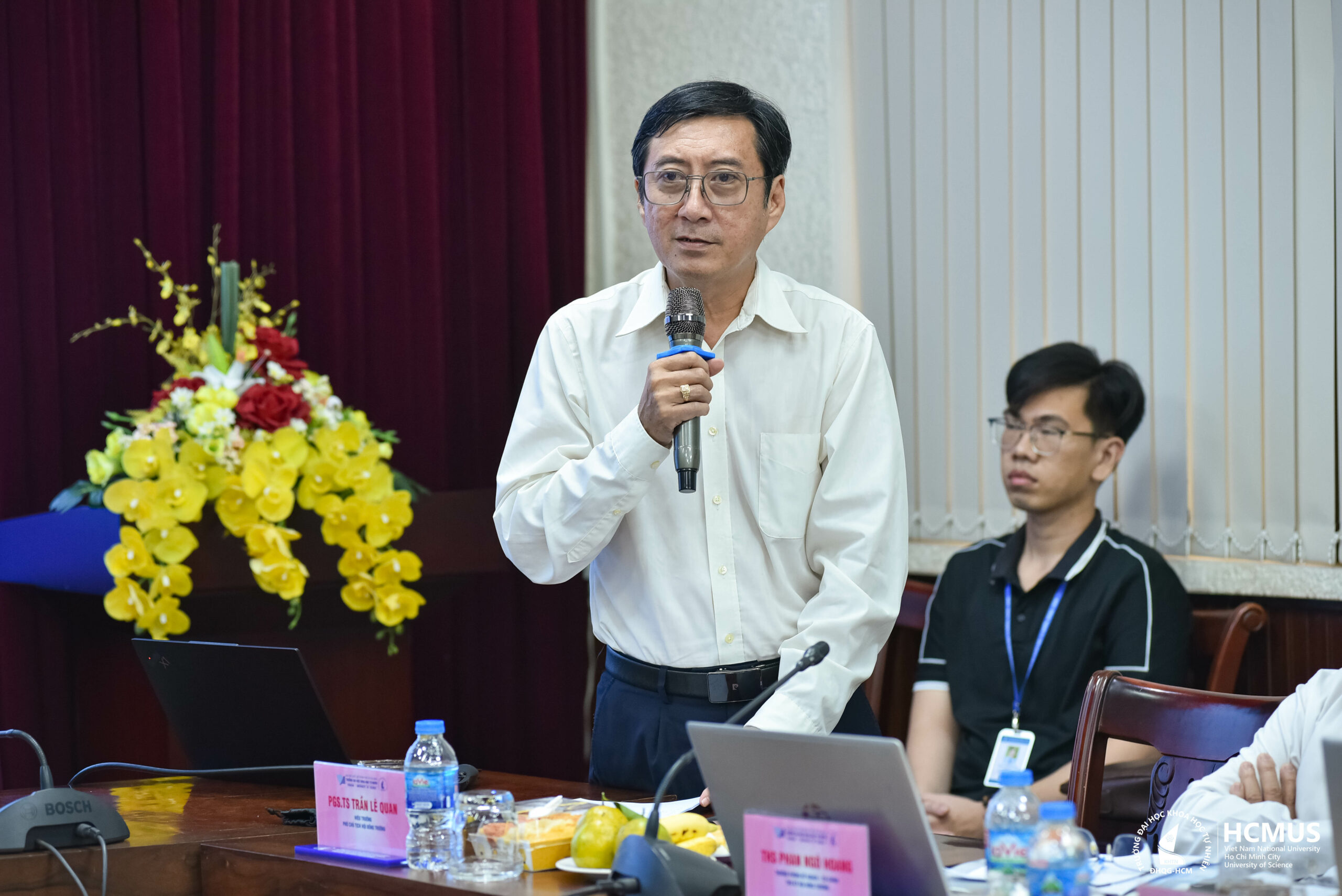 Bên cạnh đó, PGS.TS Trần Lê Quan, Hiệu trưởng cũng nêu rõ trong năm 2025, công tác xây dựng đội ngũ và phát triển cơ sở hạ tầng đã có nhiều cải tiến vượt bật. Về nhân sự Ban Giám hiệu, Trường đã bổ nhiệm thêm hai Phó Hiệu trưởng. Tính đến tháng 11/2025, tổng số viên chức và người lao động của Trường là 1.051 người. Tỷ lệ giảng viên có trình độ Tiến sĩ trở lên đạt 60,1%, có 11 viên chức được công nhận đạt tiêu chuẩn chức danh Giáo sư (03) và Phó Giáo sư (08), khẳng định chất lượng chuyên môn của đội ngũ. Về cơ sở vật chất, Trường đã tháo gỡ thành công nhiều vướng mắc pháp lý và được phê duyệt đồ án quy hoạch chi tiết xây dựng 1/500 Trường Đại học Khoa học tự nhiên và Trường Phổ thông năng khiếu để triển khai khởi công dự án xây dựng Tòa nhà TN-B4.2 giai đoạn 2 vào đầu tháng 9/2025. Đây được xem là thành tích nổi bật nhất trong năm vì trải qua nhiều vòng hồ sơ, nhiều giai đoạn và mất nhiều thời gian để nhận Quyết định ký phê duyệt vào ngày 01/02/2025 và bản chính thức được Bộ Xây dựng đóng dấu vào tháng 4/2025.