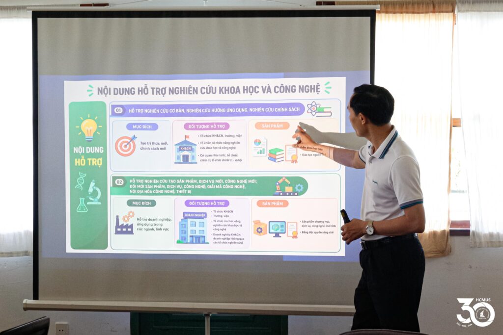 Ngày 18/06, Khoa Khoa học và Công nghệ Vật liệu thuộc Trường Đại học Khoa học tự nhiên, ĐHQG-HCM đã tổ chức thành công hội thảo khoa học với chủ đề “Từ nghiên cứu đến thị trường: Kết nối Nhà nước – Nhà trường – Doanh nghiệp”. Sự kiện quy tụ đông đảo các nhà khoa học, giảng viên, nhà quản lý và đại diện doanh nghiệp, cùng hướng tới mục tiêu cốt lõi là gắn kết hoạt động nghiên cứu học thuật với nhu cầu thực tiễn của thị trường, qua đó tạo động lực thúc đẩy phát triển kinh tế.