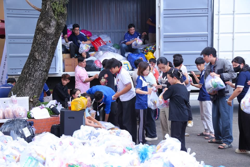 Song song với đó là hình ảnh hơn 500 tình nguyện viên túc trực từ sáng đến khuya. Các bạn phân loại từng món quà, gói từng phần nhu yếu phẩm, chuyển từng thùng hàng lên xe. Dẫu áo đã ướt đẫm mồ hôi, tay đã rám đỏ đi vì khiêng vác, nhưng ánh mắt luôn lấp lánh sự nhiệt thành. Mỗi phần quà được chuẩn bị bằng sự chu đáo, với tâm niệm: “Chỉ cần xe kịp lăn bánh, mệt mỏi bao nhiêu cũng được.”