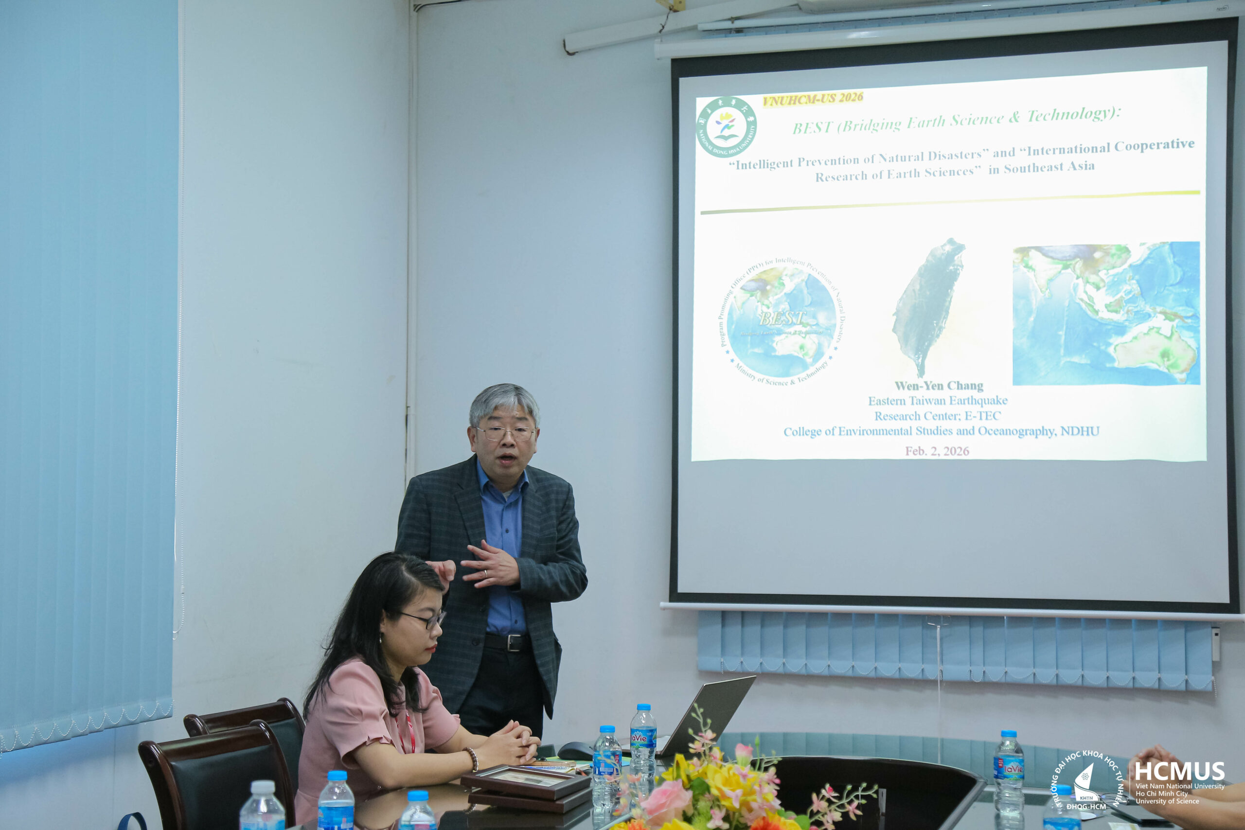 Sáng ngày 02/02/2026, tại Cơ sở Nguyễn Văn Cừ, Trường Đại học Khoa học tự nhiên, ĐHQG-HCM, Khoa Địa chất đã có buổi tiếp đón và làm việc với các Giáo sư đến từ Đại học Quốc lập Đài Loan (National Taiwan University – NTU) và Đại học Quốc lập Đông Hoa (National Dong Hwa University – NDHU), nhằm trao đổi định hướng hợp tác trong đào tạo và nghiên cứu khoa học thuộc lĩnh vực Khoa học Trái đất.
