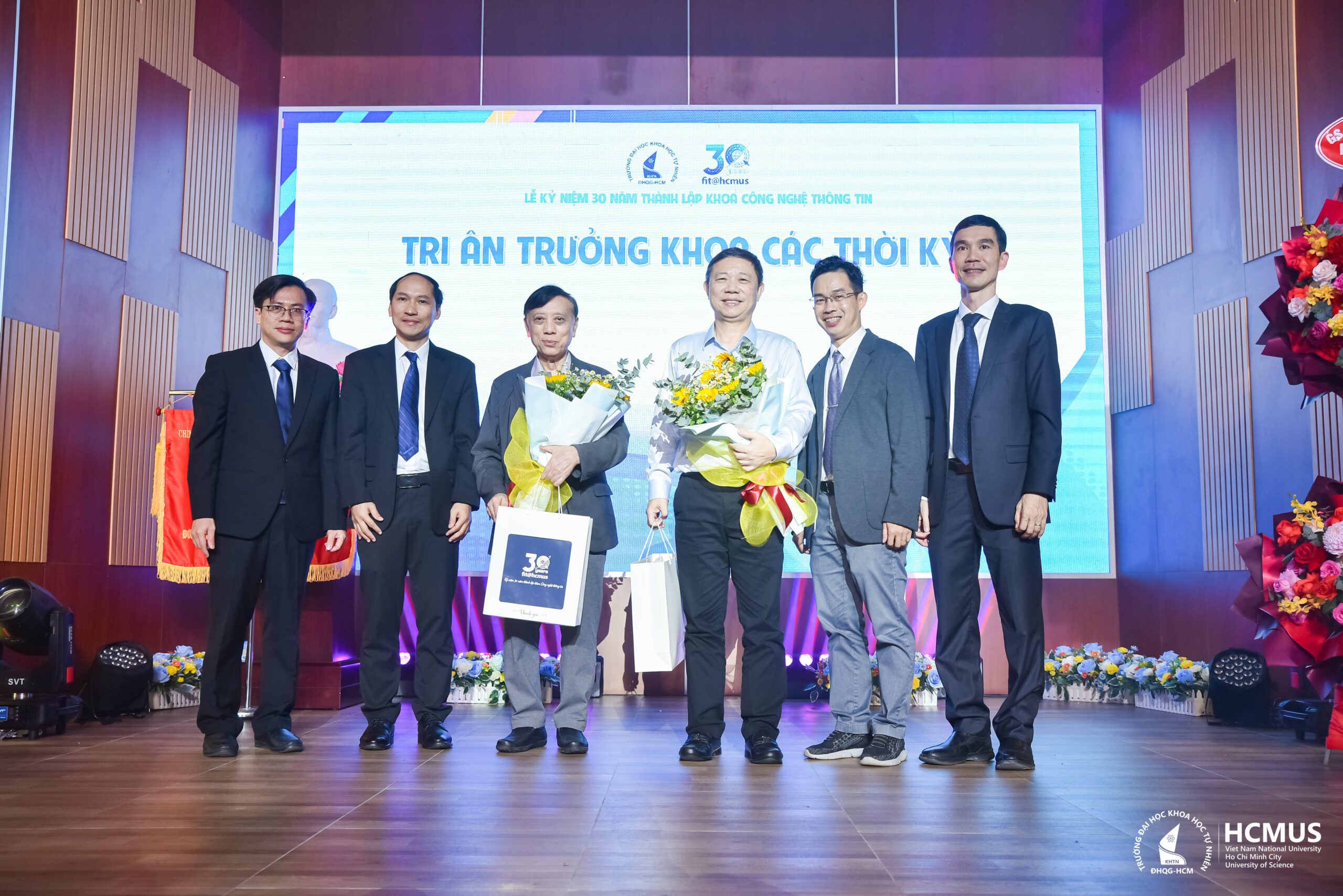 Trong khuôn khổ buổi lễ, Khoa trân trọng tri ân các thế hệ giảng viên đã gắn bó với Khoa trong nhiều giai đoạn phát triển. Đặc biệt, GS.TSKH. Hoàng Văn Kiếm,  PGS.TS. Dương Anh Đức và PGS.TS. Trần Đan Thư – nguyên Trưởng Khoa các thời kỳ – những người đặt nền móng vững chắc, khởi đầu cho hành trình xây dựng và khẳng định uy tín của Khoa Công nghệ Thông tin hôm nay.