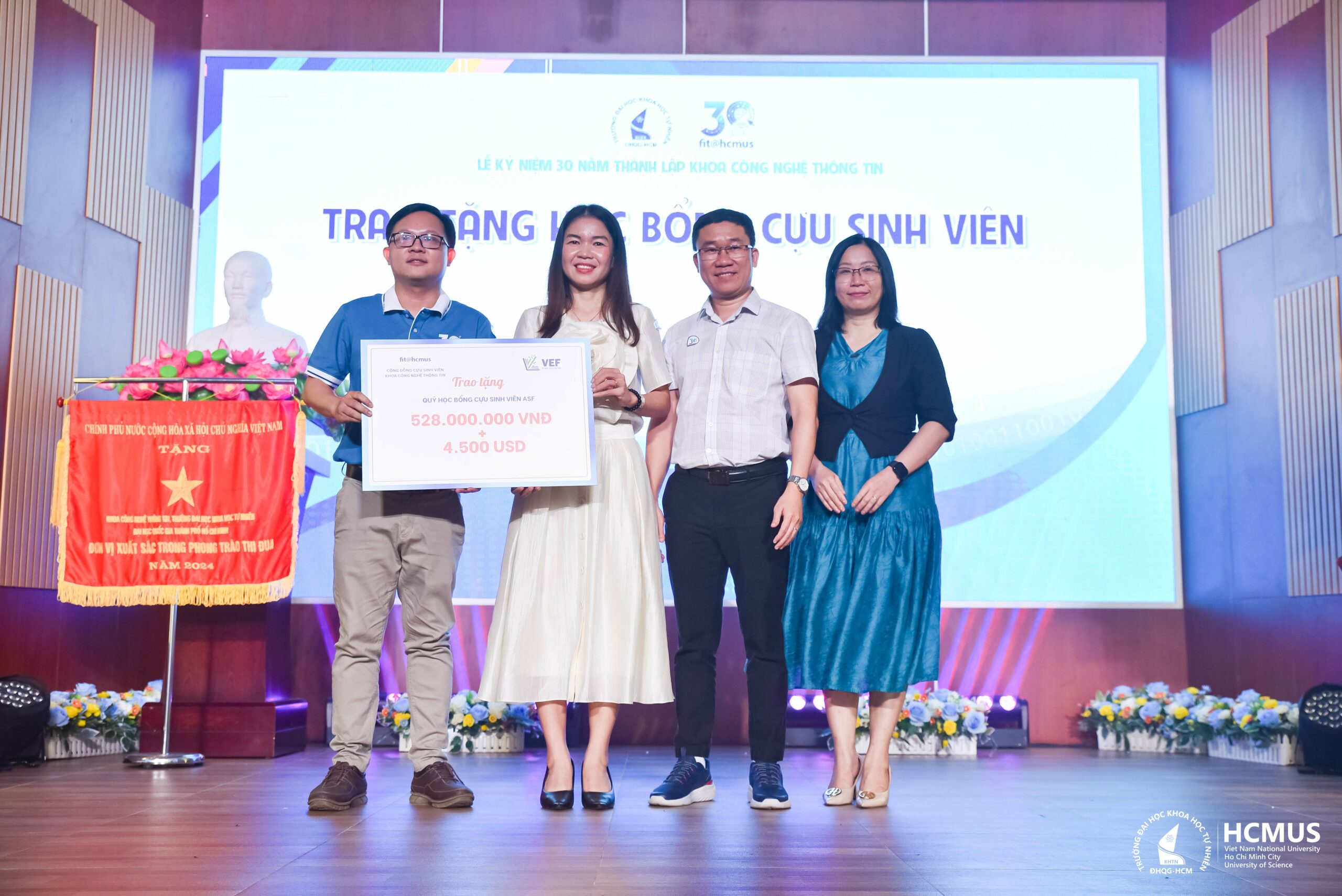 Từ mái trường này, biết bao thế hệ sinh viên đã trưởng thành, trở thành những nhà khoa học, kỹ sư, doanh nhân và nhà quản lý thành đạt. Họ chính là niềm tự hào và minh chứng sống động cho hành trình trưởng thành của Khoa. Tinh thần “trưởng thành – trở về – cống hiến” luôn được lan tỏa mạnh mẽ trong cộng đồng cựu sinh viên. Nhân dịp kỷ niệm 30 năm, Ban Đại diện Cựu sinh viên Khoa CNTT đã trao tặng Quỹ học bổng Cựu sinh viên (ASF) với tổng giá trị hơn 528 triệu đồng và 4.500 USD, tiếp nối hành trình lan tỏa giá trị nhân văn và gắn kết qua các thế hệ.