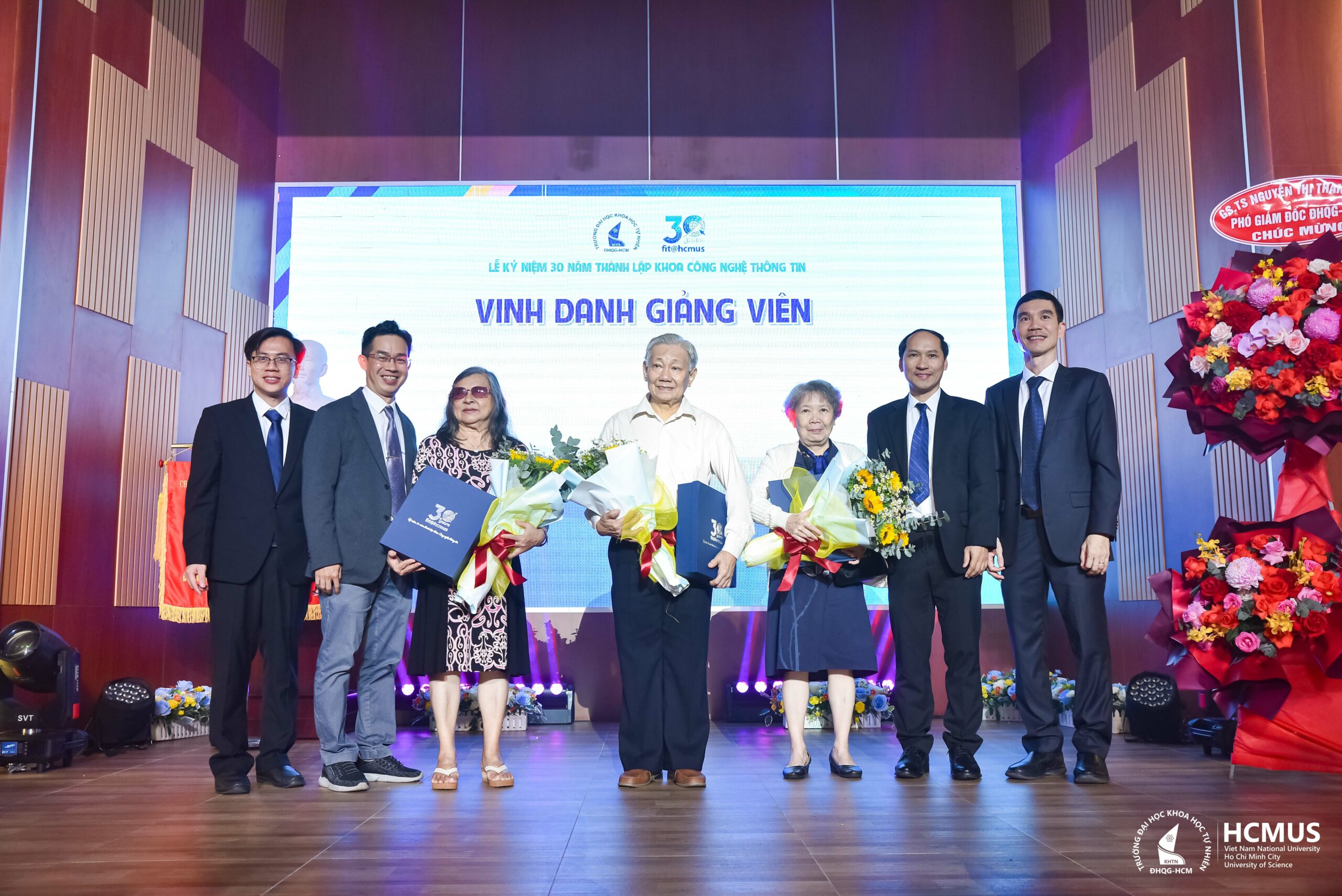 Trong khuôn khổ buổi lễ, Khoa trân trọng tri ân các thế hệ giảng viên đã gắn bó với Khoa trong nhiều giai đoạn phát triển. Đặc biệt, GS.TSKH. Hoàng Văn Kiếm,  PGS.TS. Dương Anh Đức và PGS.TS. Trần Đan Thư – nguyên Trưởng Khoa các thời kỳ – những người đặt nền móng vững chắc, khởi đầu cho hành trình xây dựng và khẳng định uy tín của Khoa Công nghệ Thông tin hôm nay.