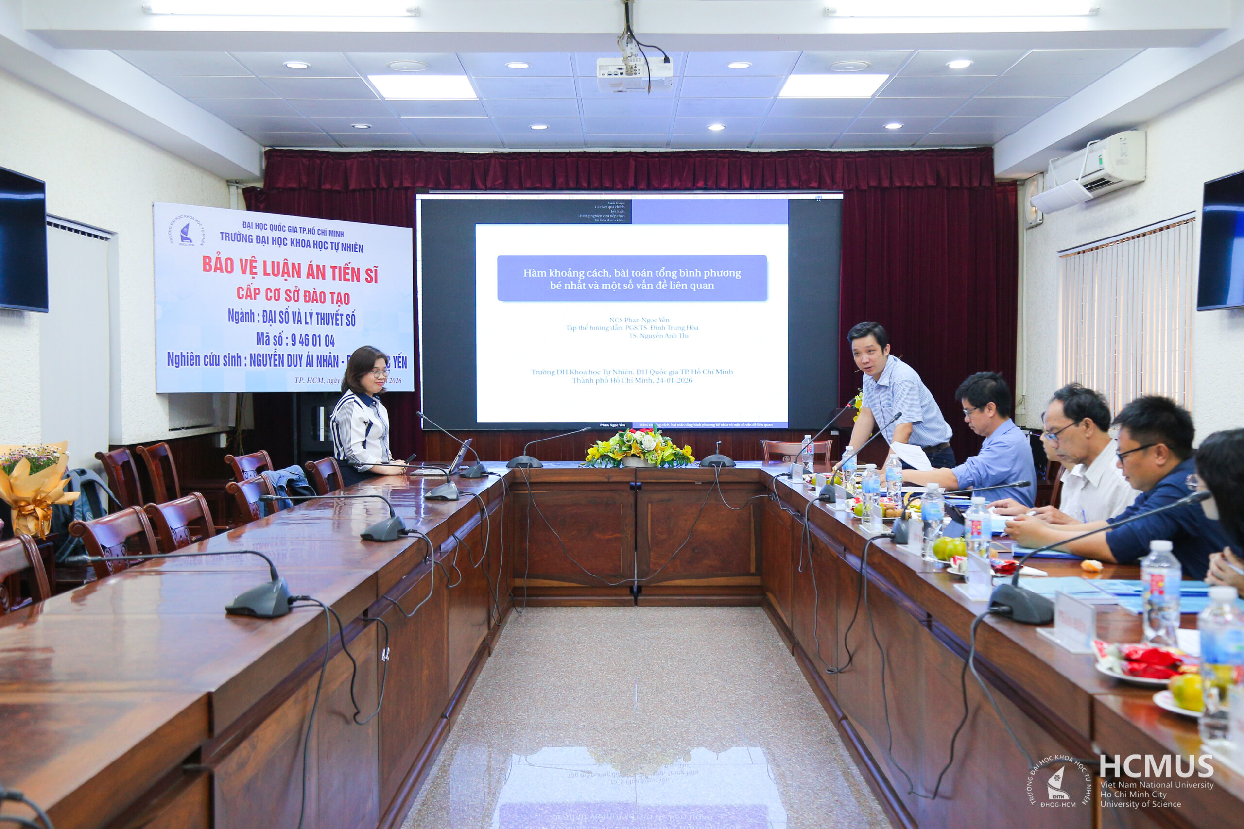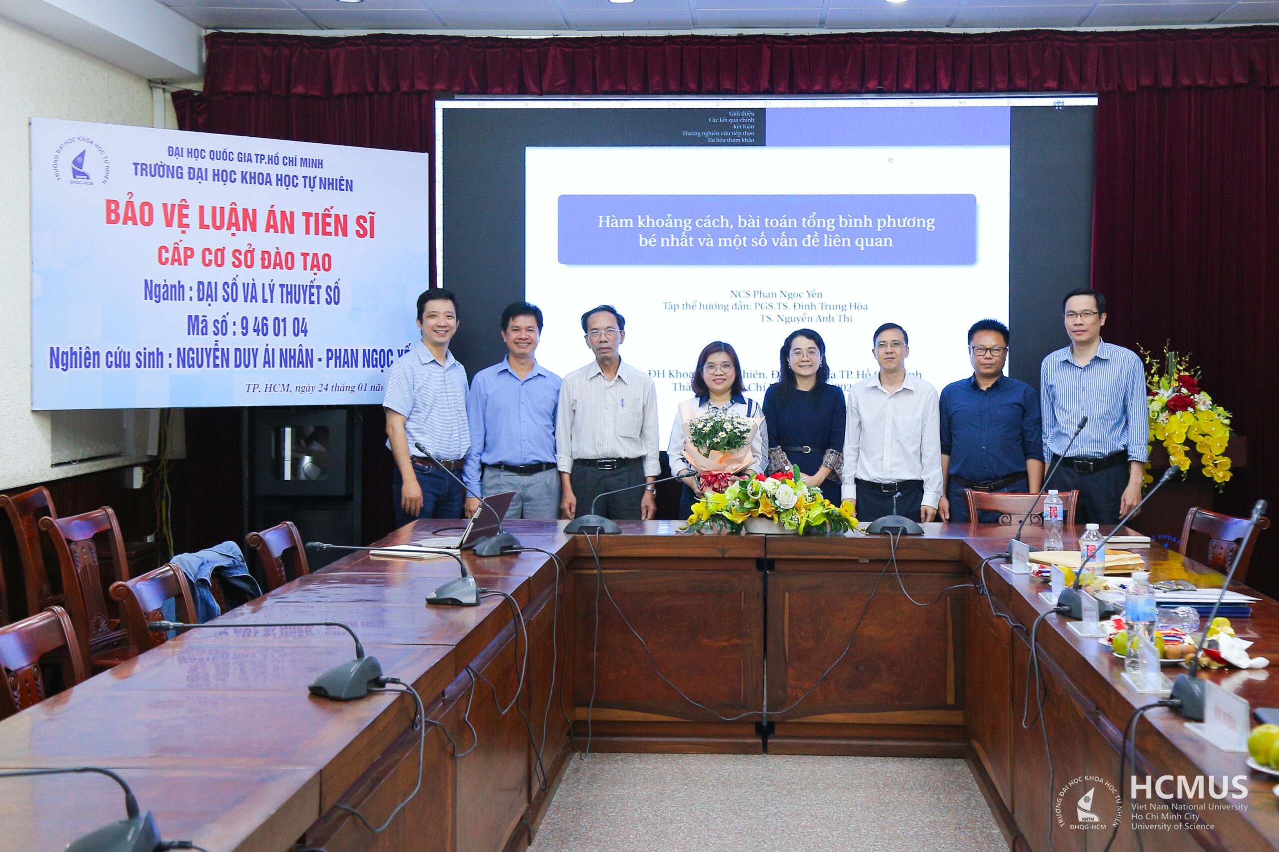 Ngày 14/01, tại Trường Đại học Khoa học tự nhiên, ĐHQG-HCM, nghiên cứu sinh Phan Ngọc Yến đã bảo vệ thành công luận án tiến sĩ cấp cơ sở đào tạo ngành Đại số và Lý thuyết số với đề tài “Hàm khoảng cách, bài toán tổng bình phương bé nhất và một số vấn đề liên quan”, dưới sự hướng dẫn khoa học của PGS.TS. Đinh Trung Hòa và TS. Nguyễn Anh Thi.