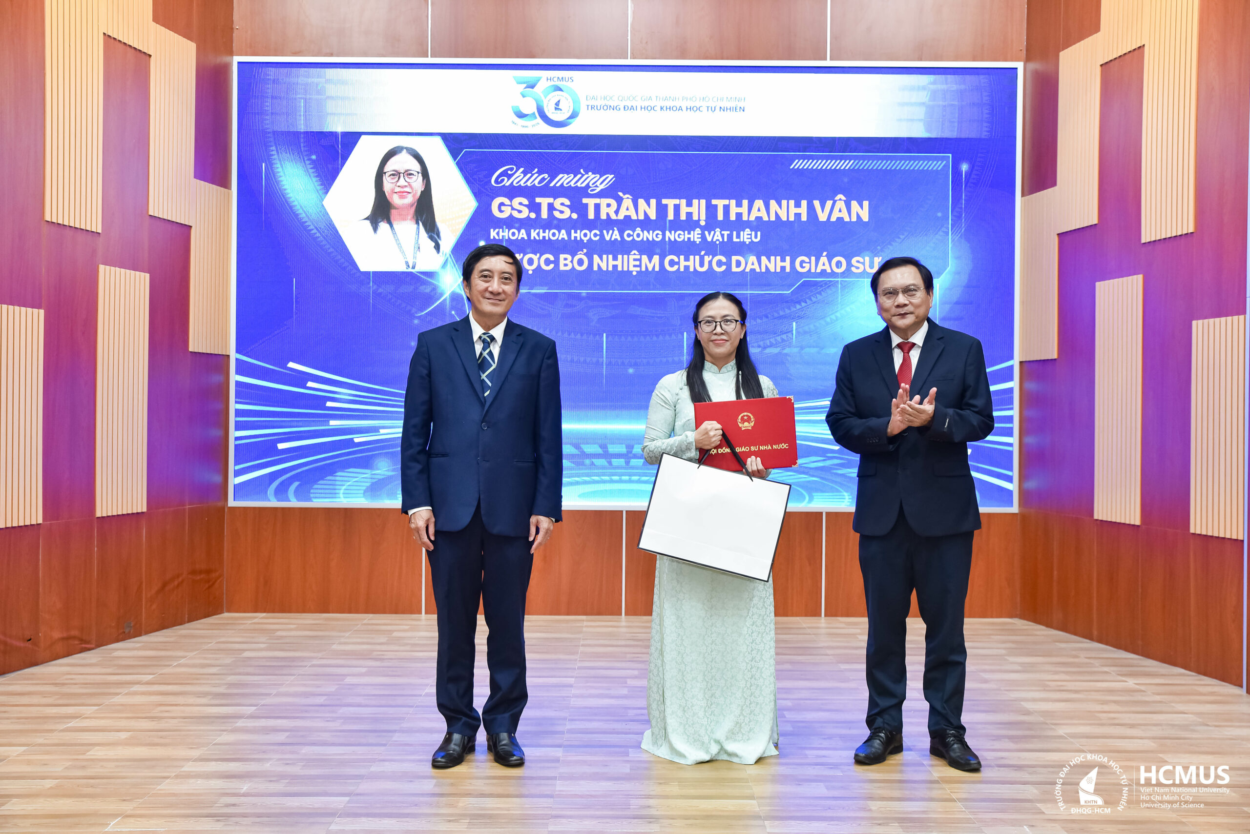 Năm 2025, GS.TS Trần Thị Thanh Vân, Trưởng Khoa Khoa học và Công nghệ Vật liệu (Trường Đại học Khoa học tự nhiên), được Hội đồng Giáo sư Nhà nước công nhận đạt chuẩn giáo sư ngành Vật lý. Ở tuổi 45, chị là nữ giáo sư trẻ nhất của năm. Con đường khoa học của chị bắt đầu từ niềm say mê Vật lý của một học sinh miền Trung và được tiếp nối bằng nhiều năm kiên trì nghiên cứu, giảng dạy, trở thành nguồn cảm hứng với nhiều thế hệ sinh viên.