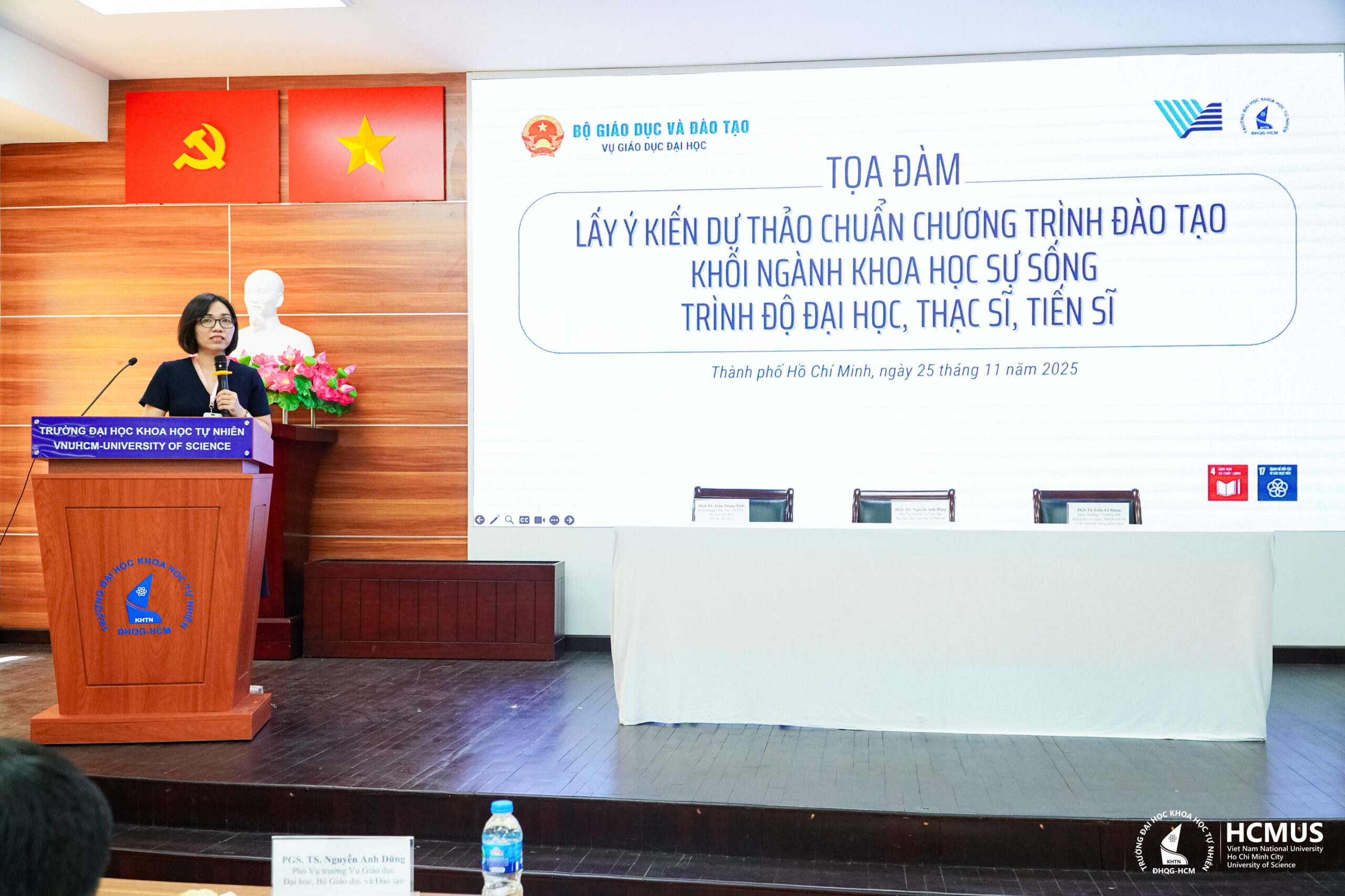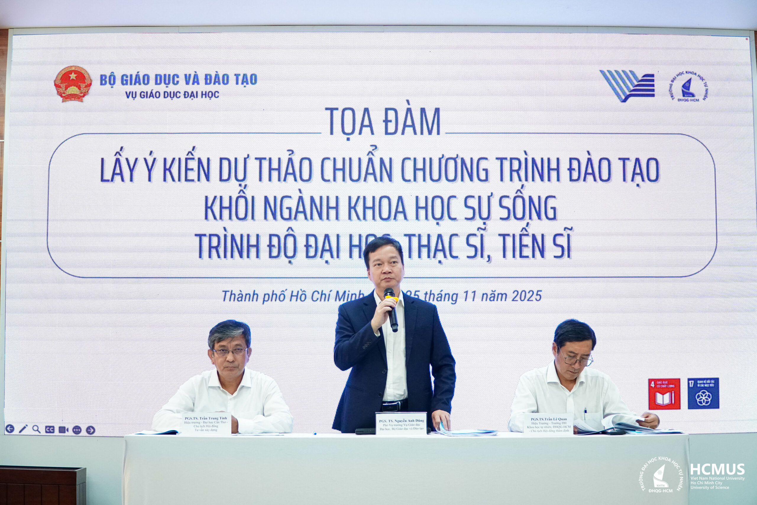 Ngày 25/11, tại Trường Đại học Khoa học tự nhiên, ĐHQG-HCM, Bộ Giáo dục và Đào tạo phối hợp cùng Nhà trường tổ chức Tọa đàm lấy ý kiến đối với Dự thảo Chuẩn chương trình đào tạo (CTĐT) khối ngành Khoa học sự sống cho ba trình độ: đại học, thạc sĩ và tiến sĩ. Hoạt động nhằm tiếp tục hoàn thiện bộ chuẩn chung phục vụ công tác thiết kế, điều chỉnh chương trình và đảm bảo chất lượng đào tạo trong lĩnh vực Khoa học sự sống.
