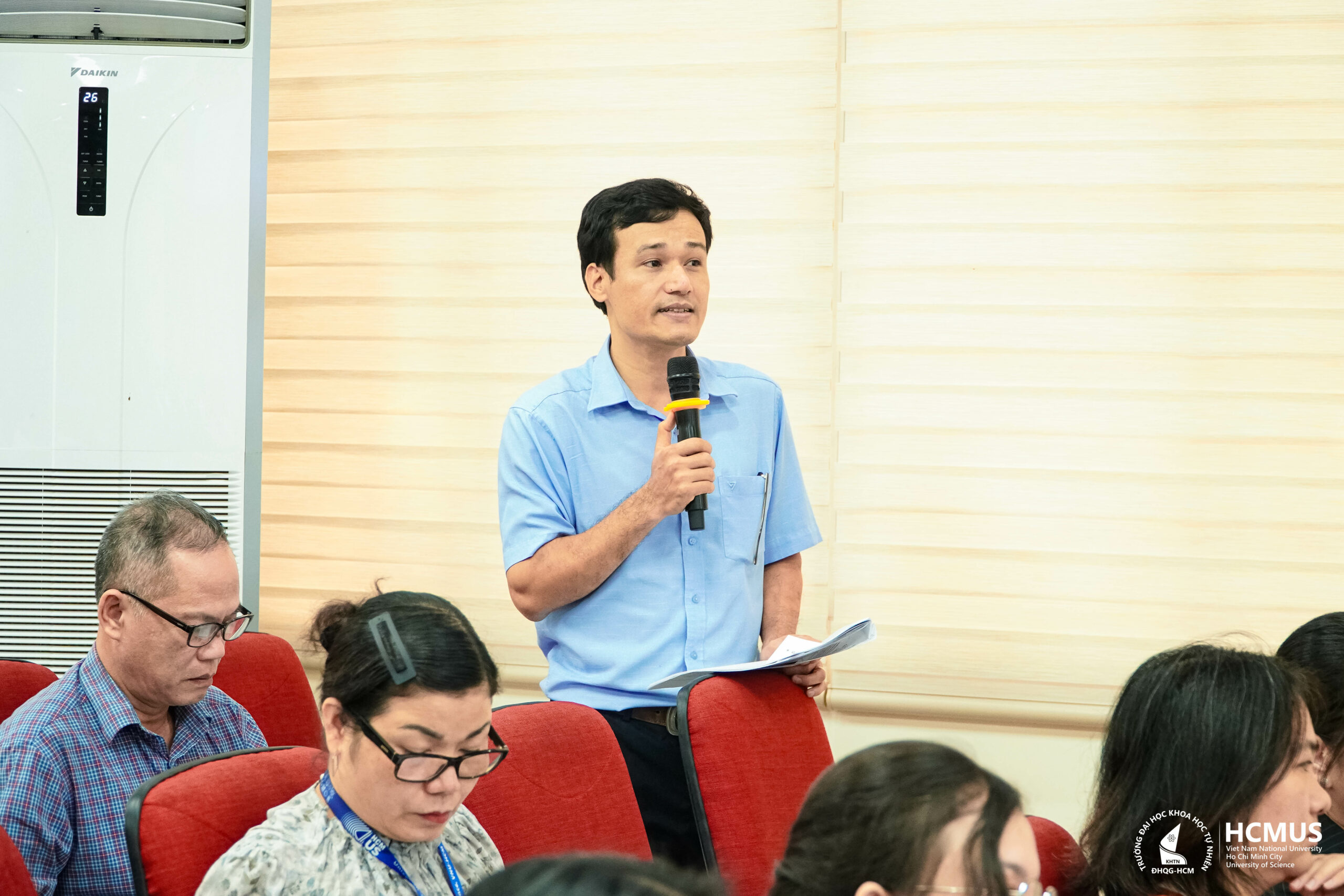 Phát biểu khai mạc, PGS.TS. Nguyễn Anh Dũng – Phó Vụ trưởng Vụ Giáo dục Đại học, Bộ Giáo dục và Đào tạo, Phó Chủ tịch Hội đồng thẩm định – nhấn mạnh sự cần thiết của việc xây dựng chuẩn CTĐT thống nhất, góp phần nâng cao chất lượng đào tạo, tăng tính liên thông giữa các bậc học và bảo đảm sự tương thích trong toàn hệ thống giáo dục đại học. PGS.TS. Trần Lê Quan – Hiệu trưởng Trường Đại học Khoa học tự nhiên, ĐHQG-HCM, Chủ tịch Hội đồng thẩm định – khẳng định Nhà trường luôn sẵn sàng đồng hành cùng Bộ trong quá trình hoàn thiện cơ sở học thuật cho lĩnh vực Khoa học sự sống, từ đó hỗ trợ các cơ sở đào tạo xây dựng chương trình theo hướng hiện đại và hội nhập.