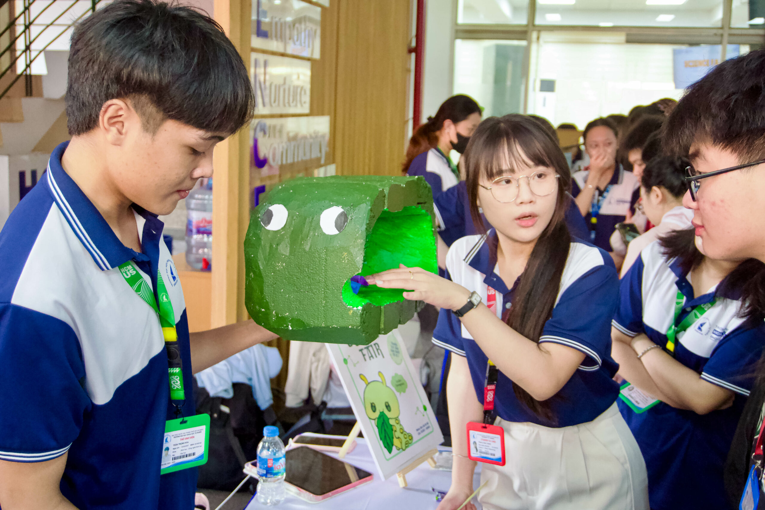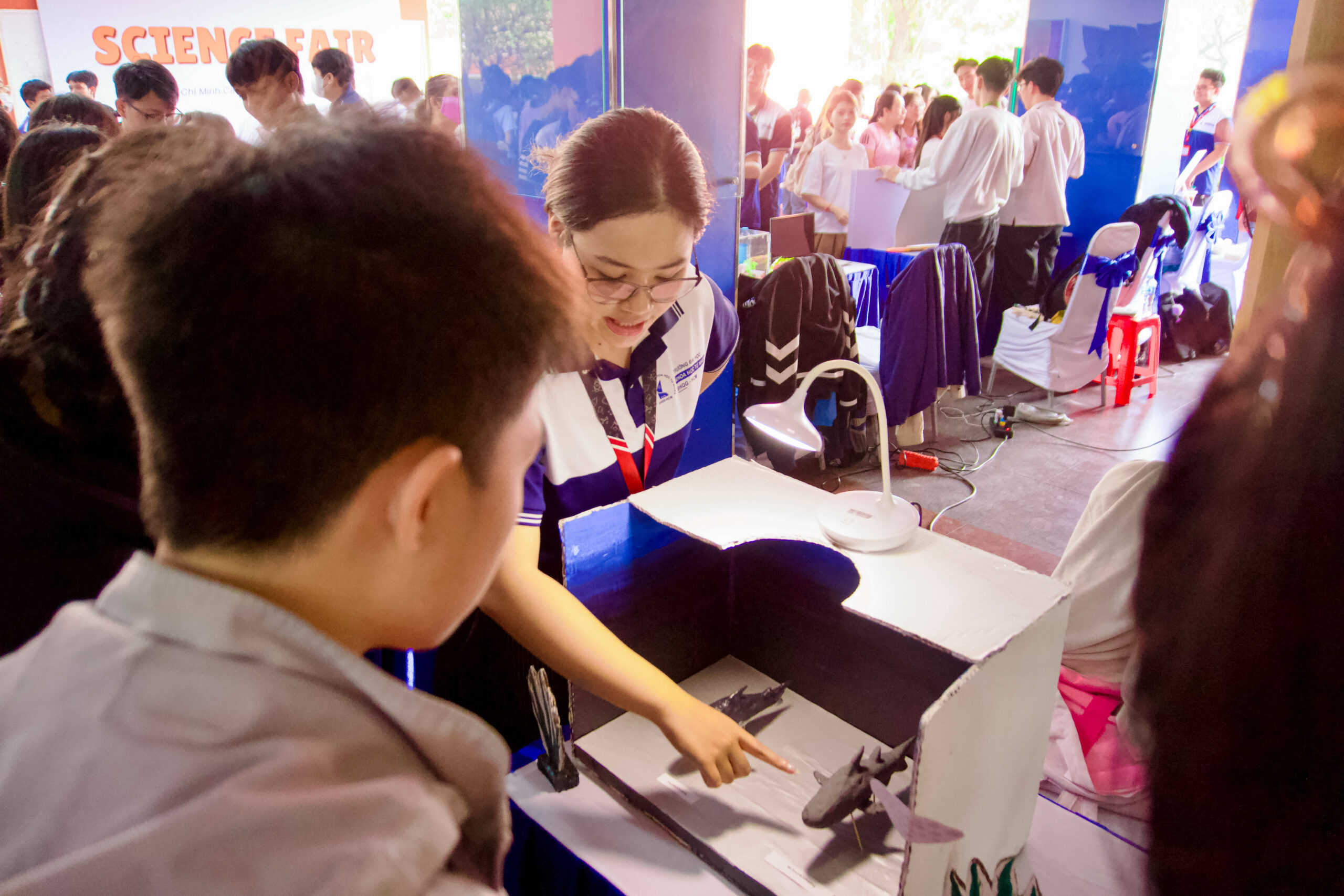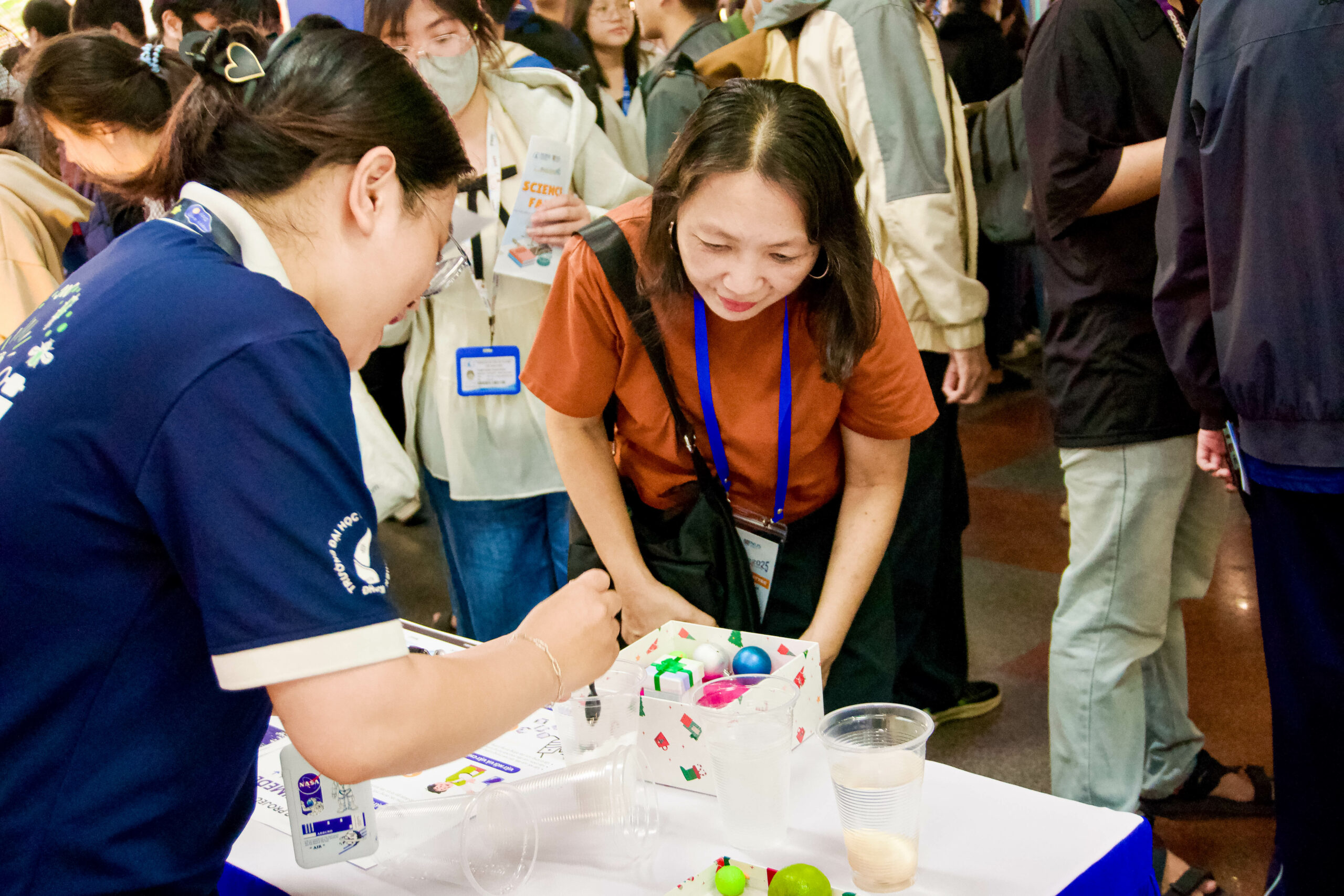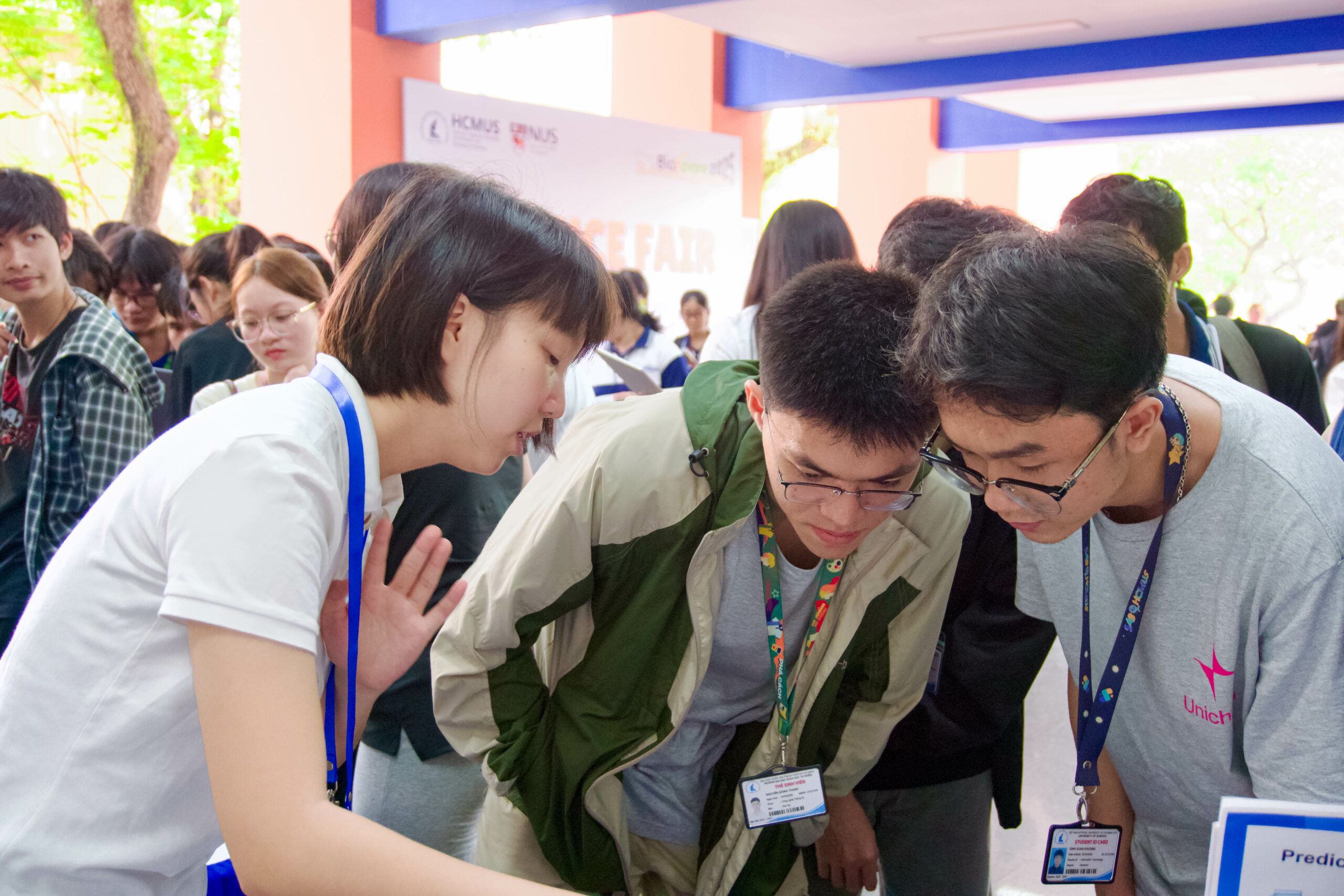 Bên cạnh hoạt động trưng bày, sự kiện còn tổ chức các khu vực trải nghiệm thực tế với các thí nghiệm vật lý, mô phỏng cơ chế sinh học và các trò chơi giáo dục ứng dụng. Tại đây, sinh viên của cả hai trường HCMUS và NUS đã trực tiếp thuyết trình, giải thích các nguyên lý khoa học và tương tác với khách tham quan. Hoạt động này tạo điều kiện để sinh viên thể hiện năng lực chuyên môn, khả năng ngoại ngữ cũng như kỹ năng truyền đạt kiến thức, đồng thời thúc đẩy sự kết nối giữa các nhóm sinh viên dù khác biệt về chuyên ngành đào tạo.
