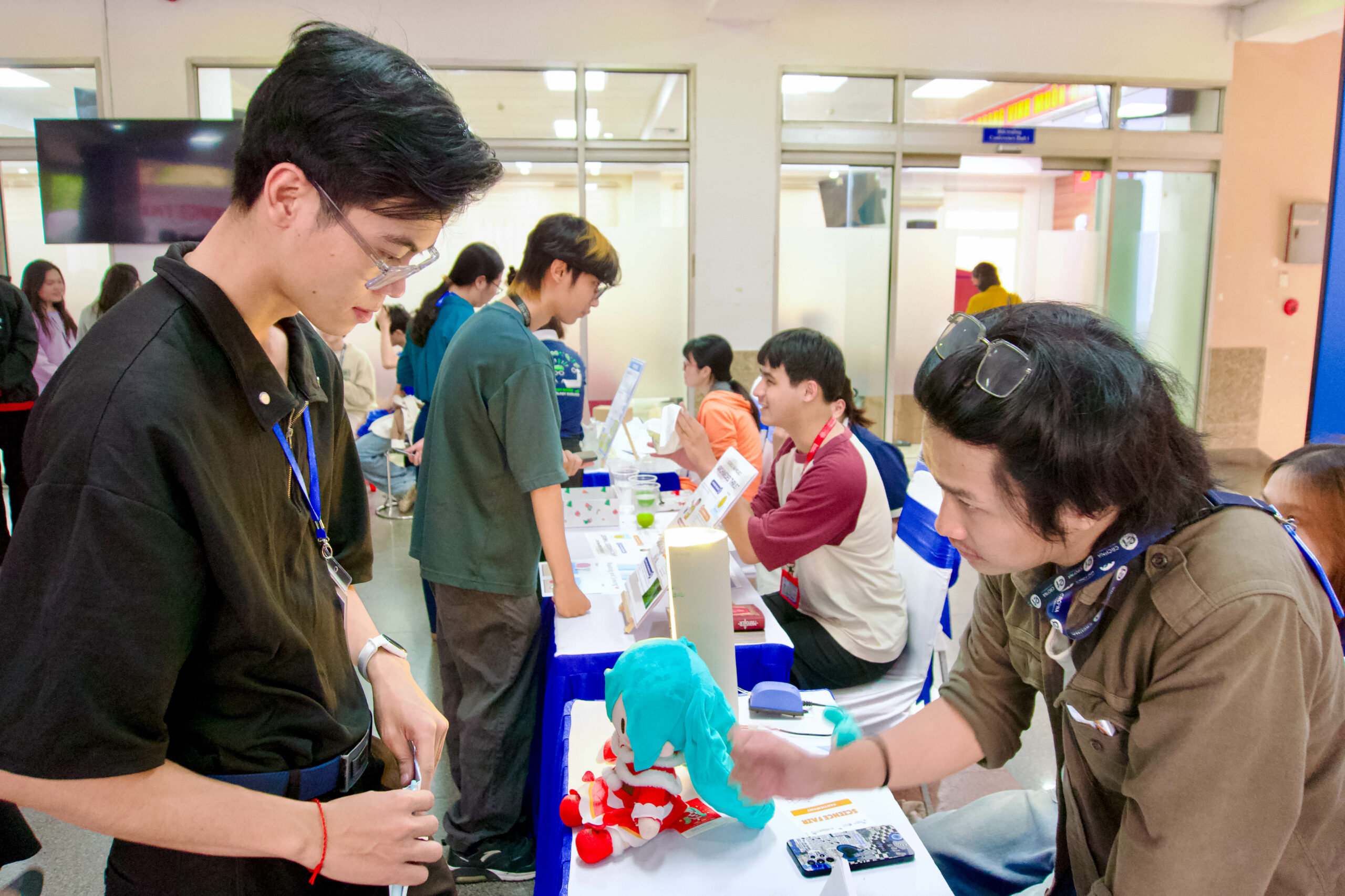 Sinh viên HCMUS và NUS giao lưu với nhau và tương tác với người tham dự tại các gian hàng triển lãm.