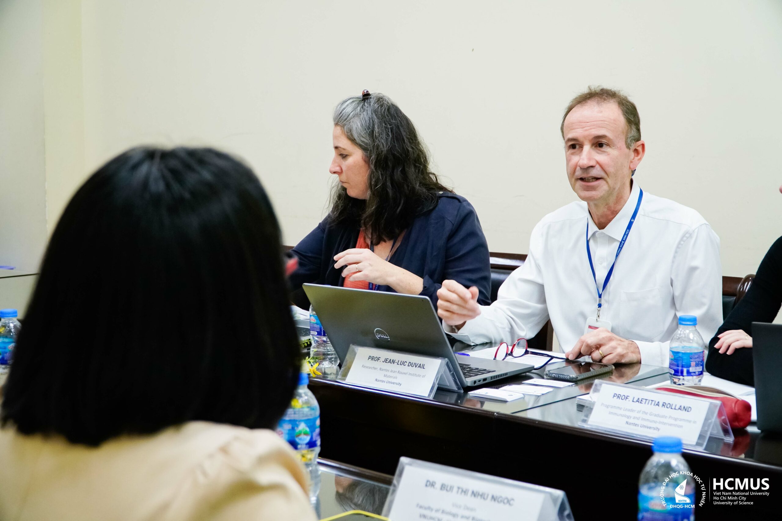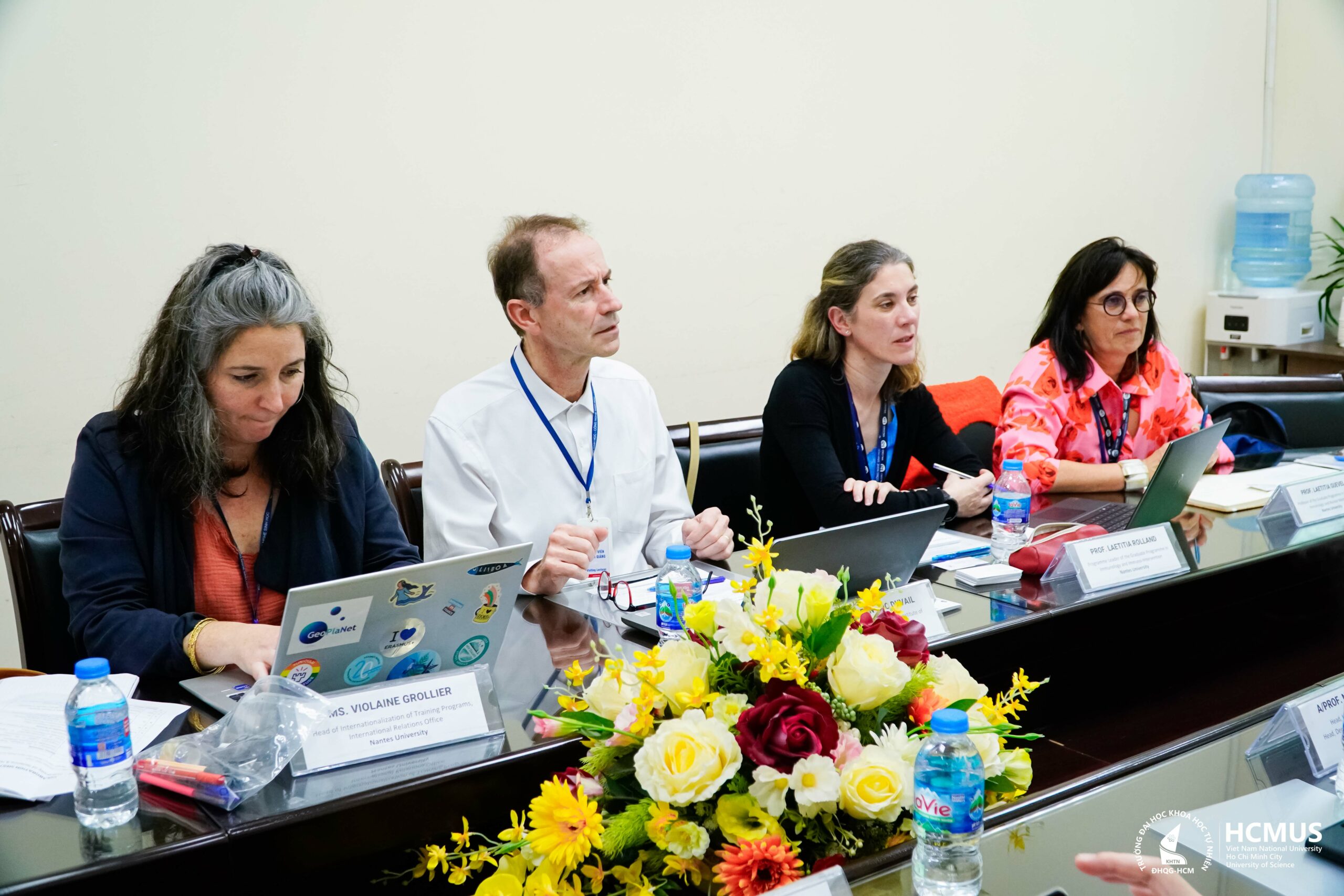 Chiều ngày 30/10, tại cơ sở Nguyễn Văn Cừ, Trường Đại học Khoa học tự nhiên, ĐHQG-HCM (HCMUS) đã đón tiếp và làm việc với đoàn đại biểu Trường Đại học Nantes (Université de Nantes), Cộng hòa Pháp, nhằm trao đổi, thảo luận các định hướng hợp tác và tiến tới ký kết Biên bản ghi nhớ hợp tác (MoU) giữa hai bên.