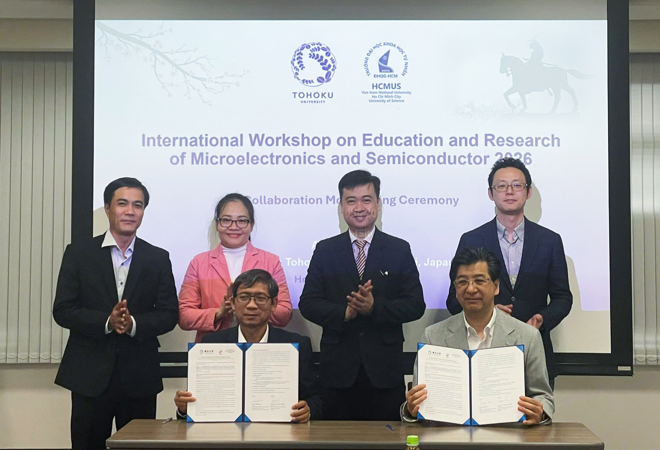 Từ ngày 08 đến 11/04/2026, đoàn công tác của Trường Đại học Khoa học tự nhiên, ĐHQG-HCM do PGS.TS. Trần Minh Triết – Phó Hiệu trưởng Nhà trường giữ vị trí Trưởng đoàn, cùng đại diện lãnh đạo và giảng viên Khoa Vật lý – Vật lý kỹ thuật (PGS.TS. Huỳnh Văn Tuấn – Trưởng khoa, PGS.TS. Nguyễn Văn Hiếu – Chủ tịch Hội Công nghệ vi mạch bán dẫn TP.HCM và PGS.TS. Vũ Thị Hạnh Thu) đã có chuyến làm việc, tham dự hội thảo quốc tế và trao đổi hợp tác tại Tohoku University (Nhật Bản).