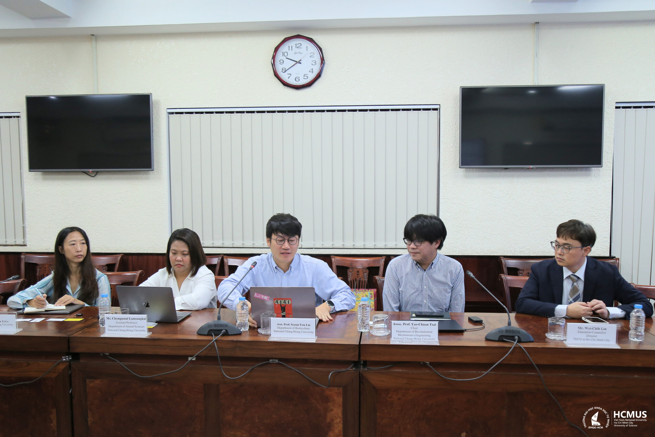 Trong phần trao đổi, hai bên thảo luận về hợp tác nghiên cứu ứng dụng, phát triển công nghệ sinh học nông nghiệp, trao đổi nghiên cứu viên, giảng viên và người học, kết nối phòng thí nghiệm phục vụ các dự án chung. Đại diện hai trường đánh giá cao sự bổ trợ giữa thế mạnh nghiên cứu cơ bản của HCMUS và thế mạnh ứng dụng của NCHU, đặc biệt trong nông nghiệp thông minh, sinh học phân tử và công nghệ cảm biến.