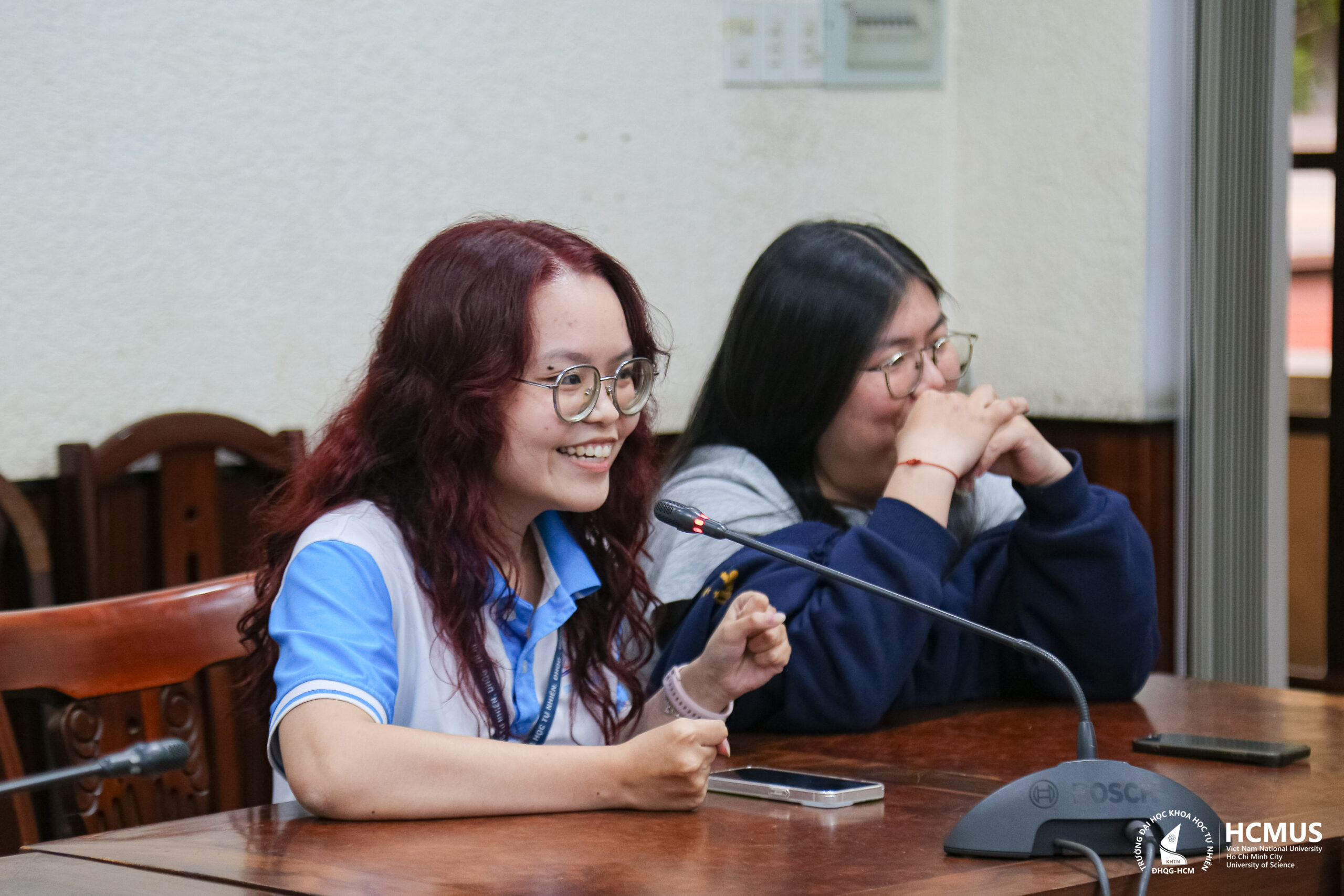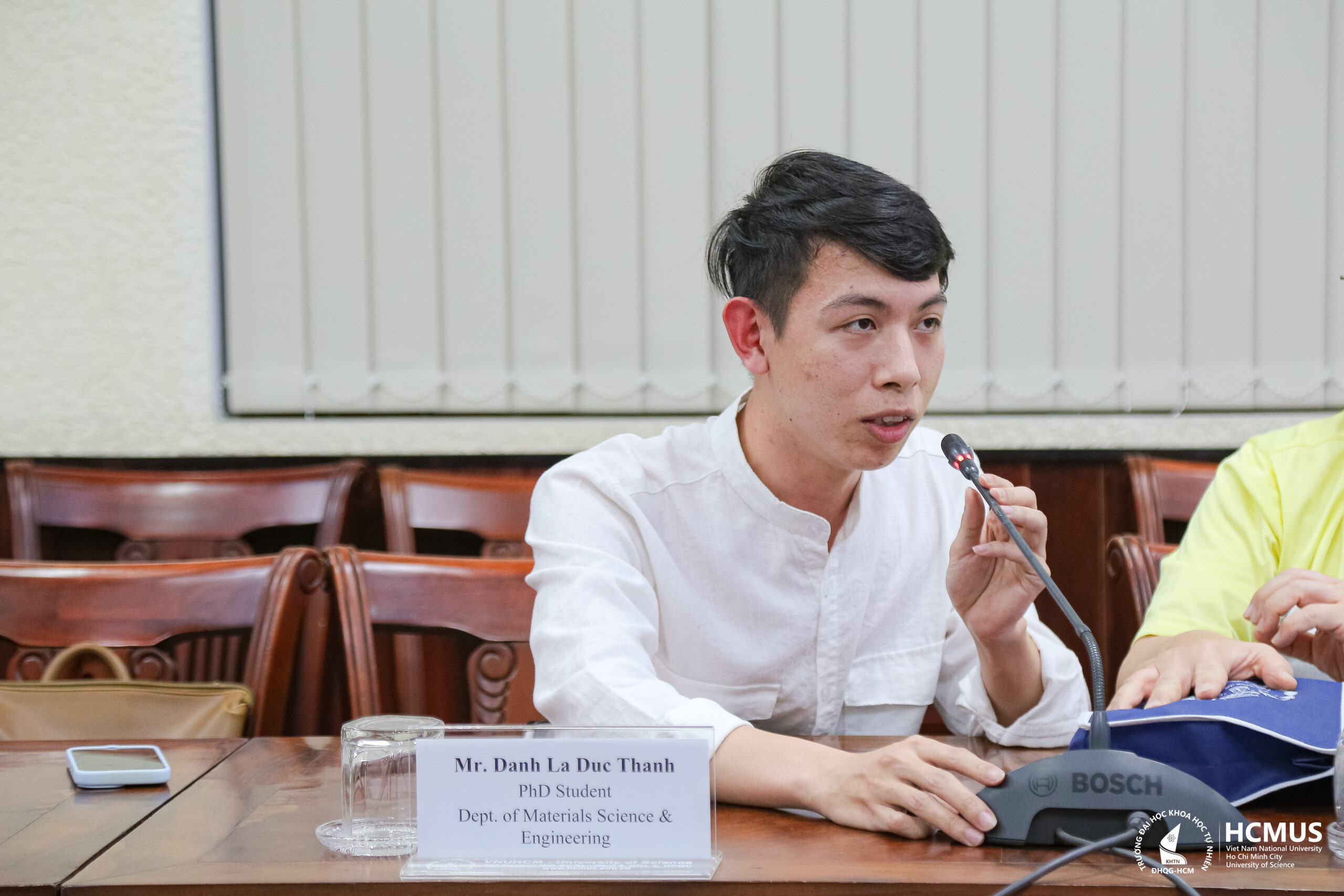Về phía Trường Đại học Khoa học tự nhiên, ĐHQG-HCM, buổi làm việc có sự tham dự của PGS. TS. Võ Hồng Hải – Phó Trưởng Phòng Quan hệ Đối ngoại; GS. TS. Trần Thị Thanh Vân – Trưởng khoa Khoa Khoa học và Công nghệ Vật liệu, cùng các giảng viên, sinh viên và học viên của Khoa; và PGS. TS. Võ Quốc Khương – Khoa Hóa học.
