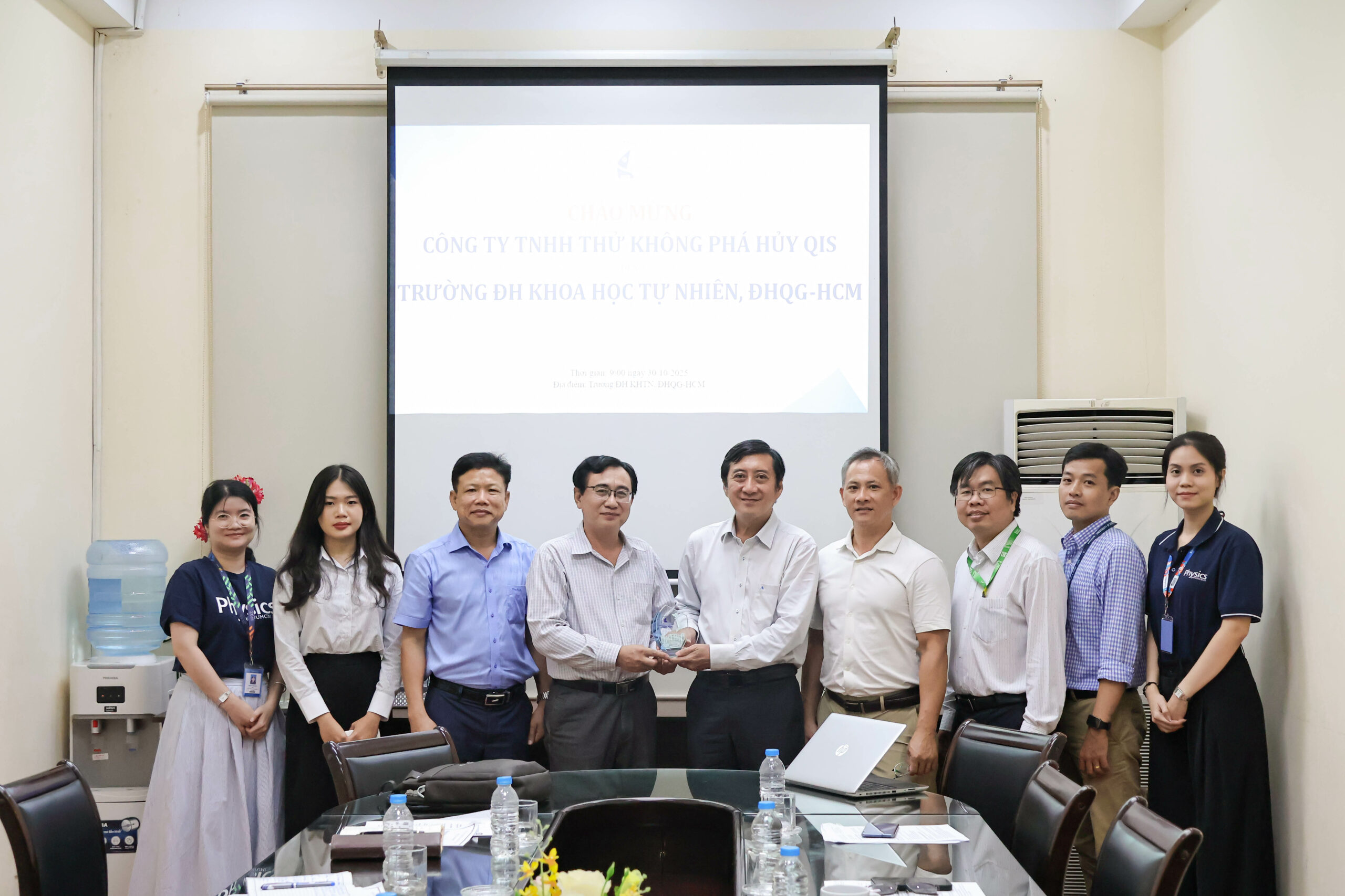 Sáng ngày 30/10, tại cơ sở Nguyễn Văn Cừ, Trường Đại học Khoa học tự nhiên, ĐHQG-HCM (HCMUS) đã đón tiếp và làm việc với Công ty TNHH Dịch vụ Thử không phá huỷ QIS. Buổi gặp gỡ nhằm trao đổi và định hướng hợp tác toàn diện giữa Nhà trường và doanh nghiệp trong đào tạo, nghiên cứu ứng dụng và phát triển nguồn nhân lực chất lượng cao trong lĩnh vực Vật lý – Vật lý kỹ thuật và các lĩnh vực liên quan. Đây là bước tiến mới trong mối quan hệ hợp tác giữa hai bên, hướng đến lợi ích lâu dài cho sinh viên, Nhà trường và cộng đồng khoa học.