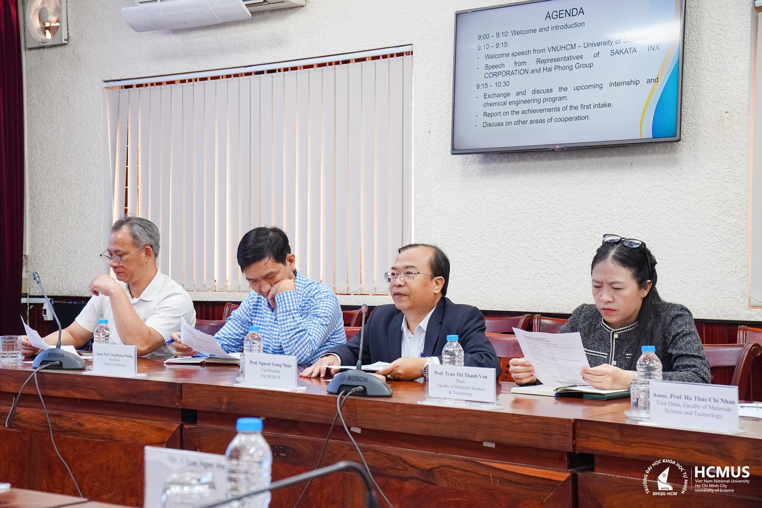 Tham dự buổi làm việc, về phía Nhà trường có đại diện Ban Giám hiệu cùng lãnh đạo Phòng Quan hệ Đối ngoại, Khoa Hóa học và Khoa Khoa học & Công nghệ Vật liệu. Về phía đối tác, có sự hiện diện của Ban lãnh đạo Tập đoàn Sakata INX, Công ty Hải Phong cùng các chuyên gia thuộc bộ phận chuyên môn liên quan.