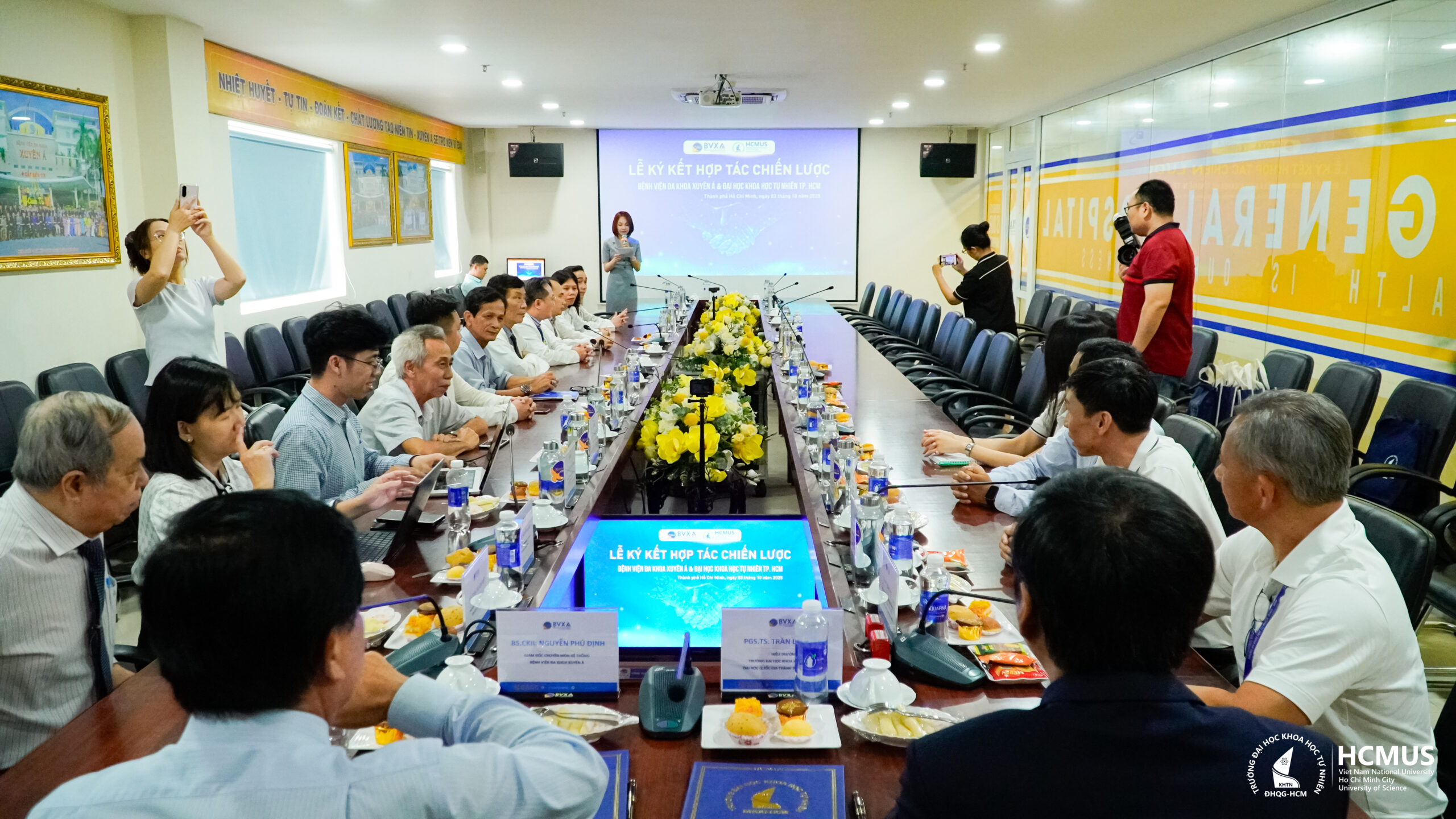 Toàn cảnh lễ ký kết Biên bản Ghi nhớ hợp tác giữa Trường Đại học Khoa học tự nhiên, ĐHQG-HCM và Bệnh viện Đa khoa Xuyên Á.