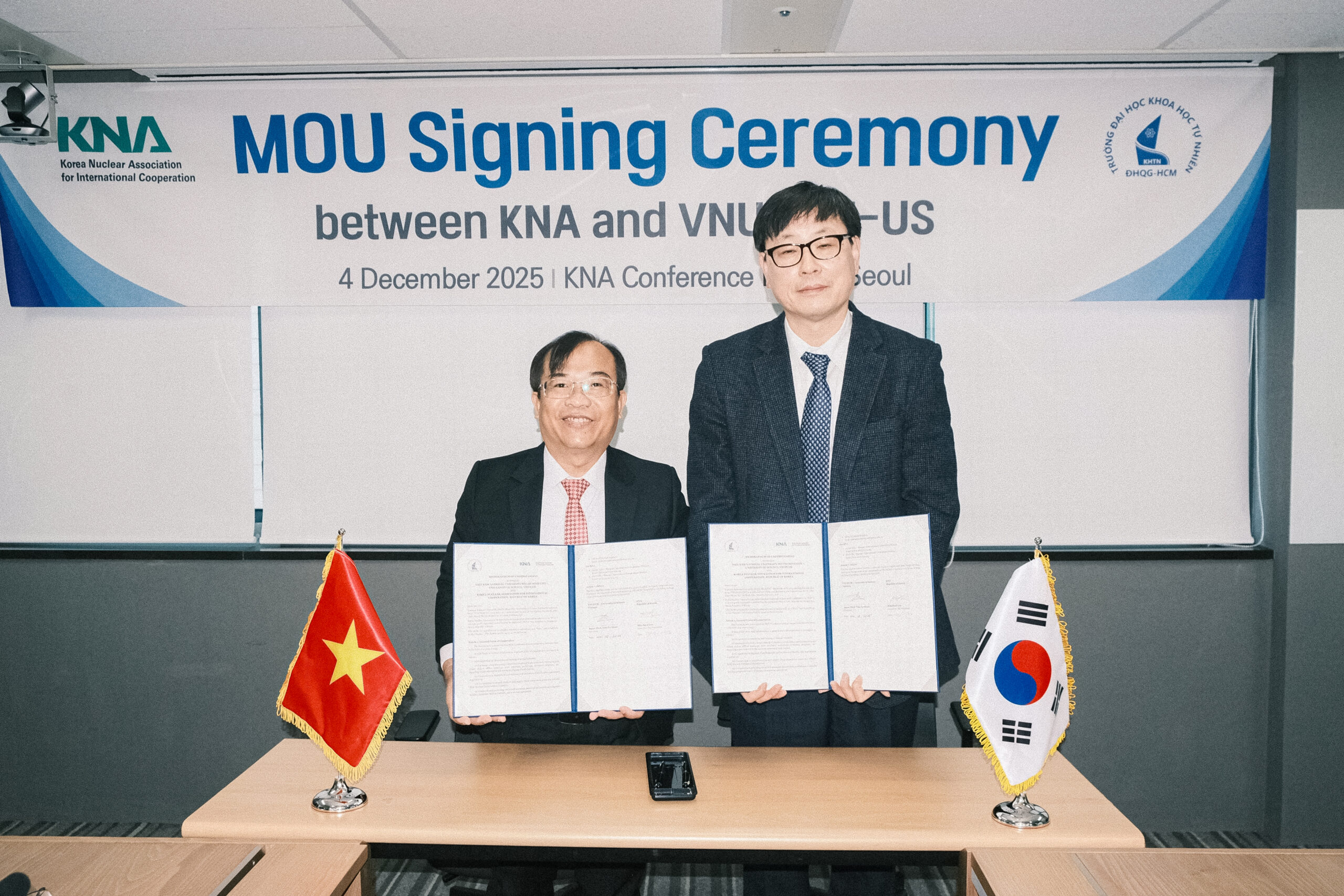 Khép lại chuyến công tác, HCMUS và Hiệp hội Hạt nhân Hàn Quốc (KNA) đã ký kết Biên bản ghi nhớ hợp tác (MoU). Theo thỏa thuận, hai bên cam kết thúc đẩy các hoạt động trao đổi học thuật và trao đổi chuyên gia; phối hợp đào tạo nhân lực chất lượng cao; tổ chức hội thảo khoa học và chương trình bồi dưỡng chuyên môn; tạo điều kiện cho sinh viên và giảng viên tiếp cận môi trường công nghiệp hạt nhân hiện đại.