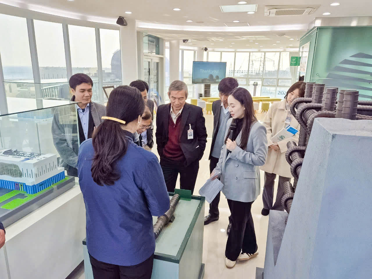 Một trong những dấu mốc quan trọng của hành trình là chuyến tham quan Nhà máy điện hạt nhân Saeul – đơn vị vận hành lò phản ứng APR-1400 do Hàn Quốc tự phát triển. Đoàn đã khảo sát thực tế bốn tổ máy, trong đó hai tổ máy đang vận hành và hai tổ máy đang xây dựng, đồng thời tham quan các khu vực trọng yếu như bể chứa nhiên liệu đã qua sử dụng, nhà tua-bin và phòng điều khiển trung tâm. Mô hình quản lý – vận hành an toàn và hoàn toàn tự chủ của Saeul là minh chứng rõ nét cho năng lực công nghệ hạt nhân hiện đại của Hàn Quốc.