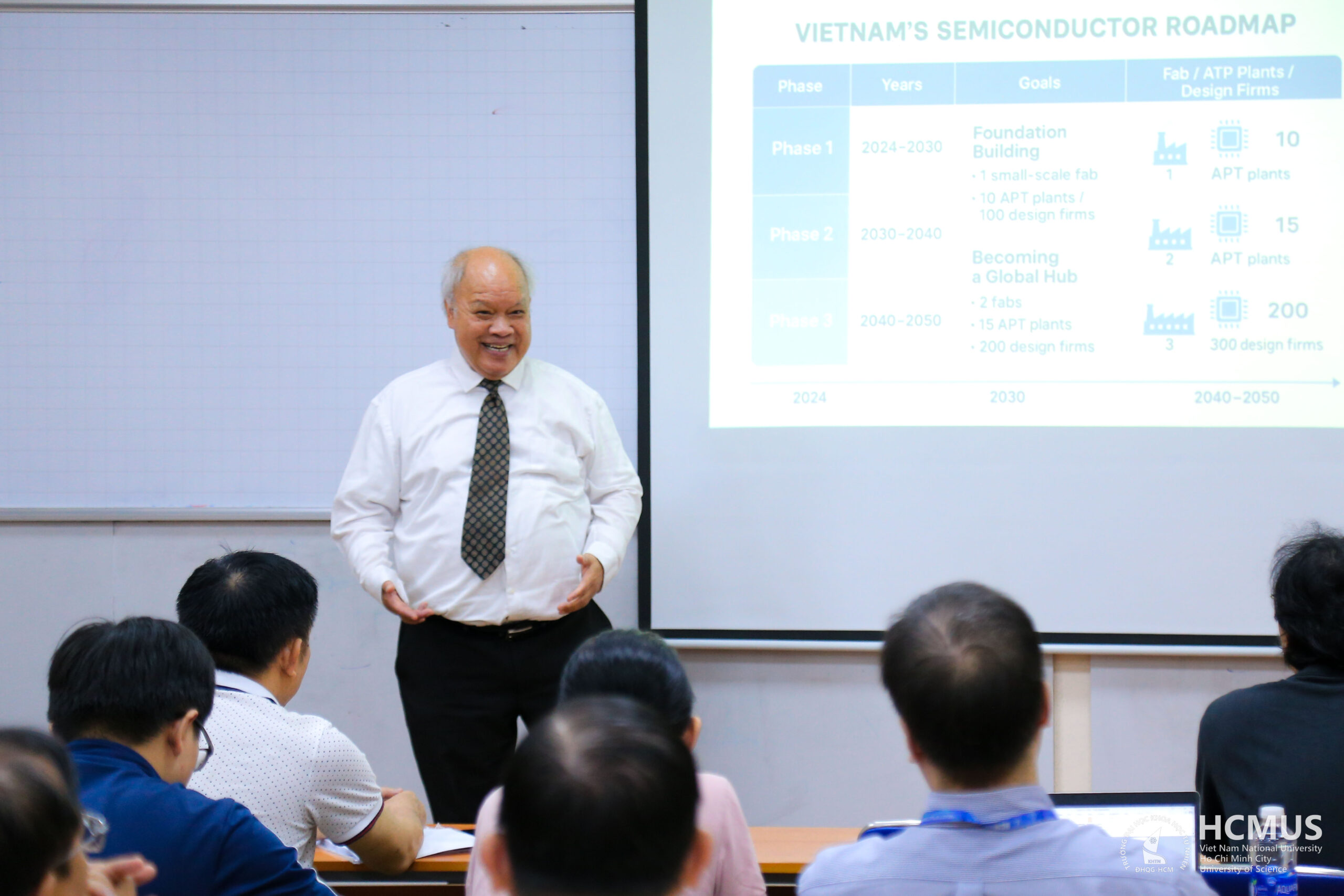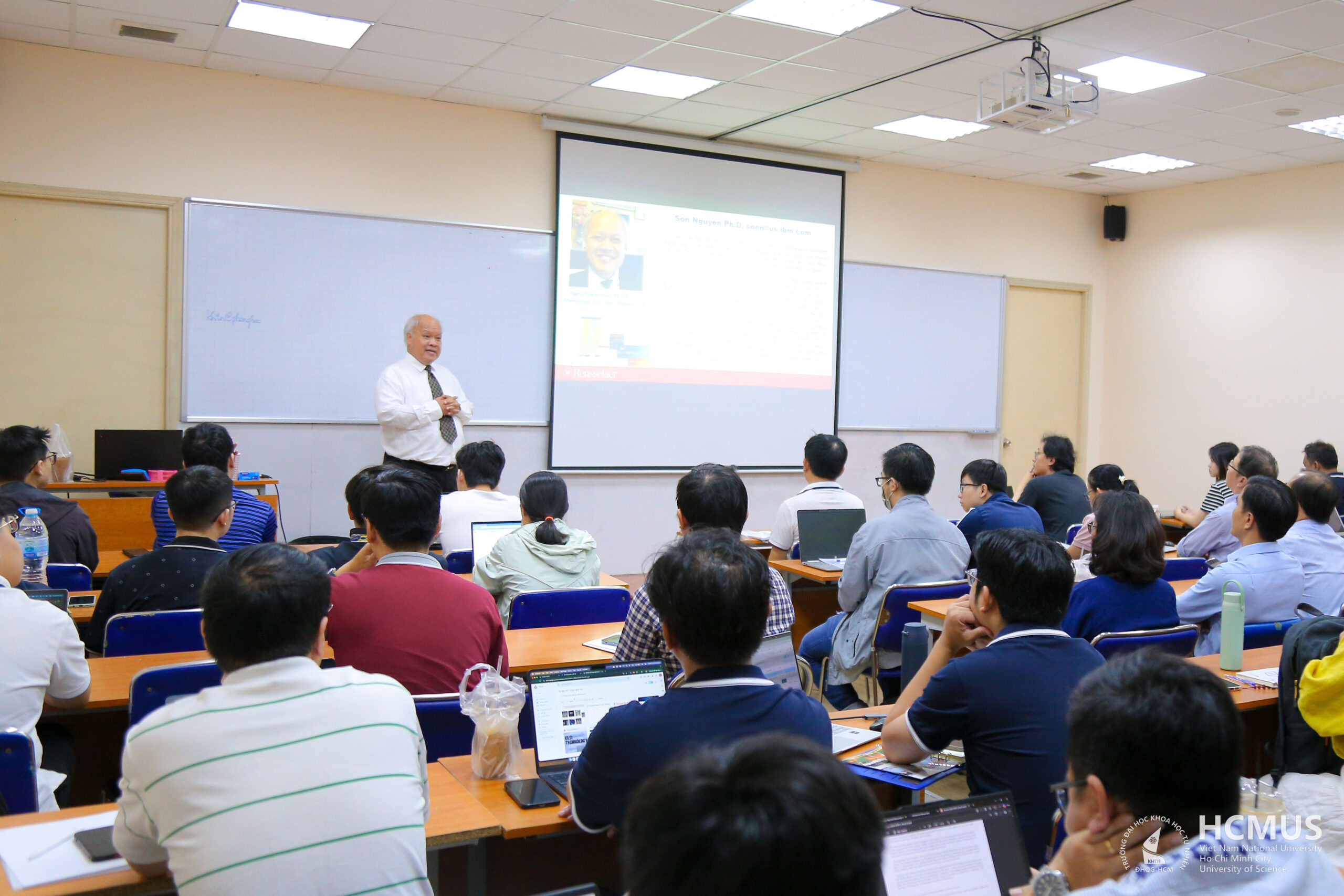 Từ ngày 24-26/2/2026, Trường Đại học Khoa học tự nhiên, ĐHQG-HCM tổ chức khóa học chuyên sâu về công nghệ bán dẫn do TS. Nguyễn Văn Sơn – Nghiên cứu gia chính tại IBM Albany Nanotech (Hoa Kỳ) trực tiếp giảng dạy. Khóa học quy tụ 50 giảng viên và học viên cao học, tập trung cập nhật kiến thức từ nền tảng đến chuyên sâu, đặc biệt nhấn mạnh kỹ thuật chế tạo, đóng gói chip và ứng dụng AI trong ngành bán dẫn.